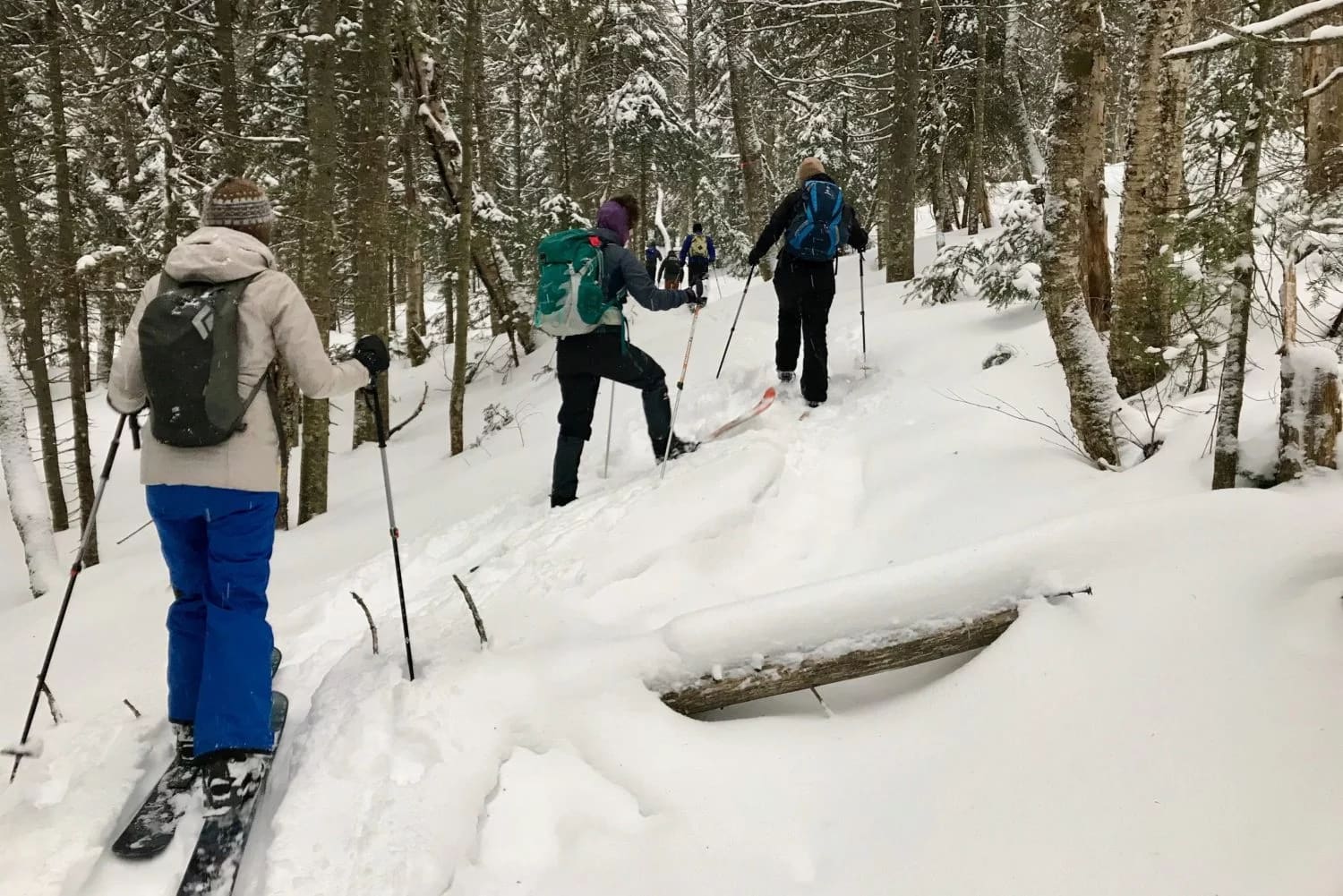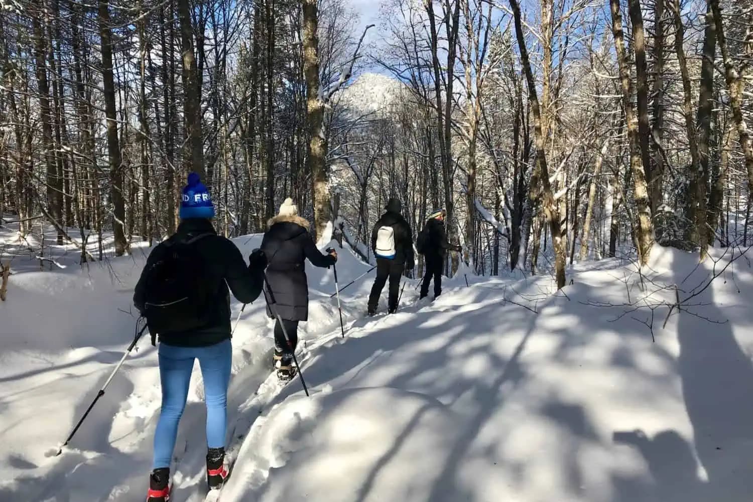 Quatre Natures lädt Sie ein, das Schneeschuhlaufen im Parc national Jacques-Cartier zu entdecken, auch bekannt als Skihok. Diese neue Sportart, die in Québec entstanden ist, verbindet die Vorteile des Schneeschuhwanderns mit denen des Skilanglaufs und eignet sich hervorragend, um die verschneiten Wege in Québec auf originelle Weise zu erkunden.