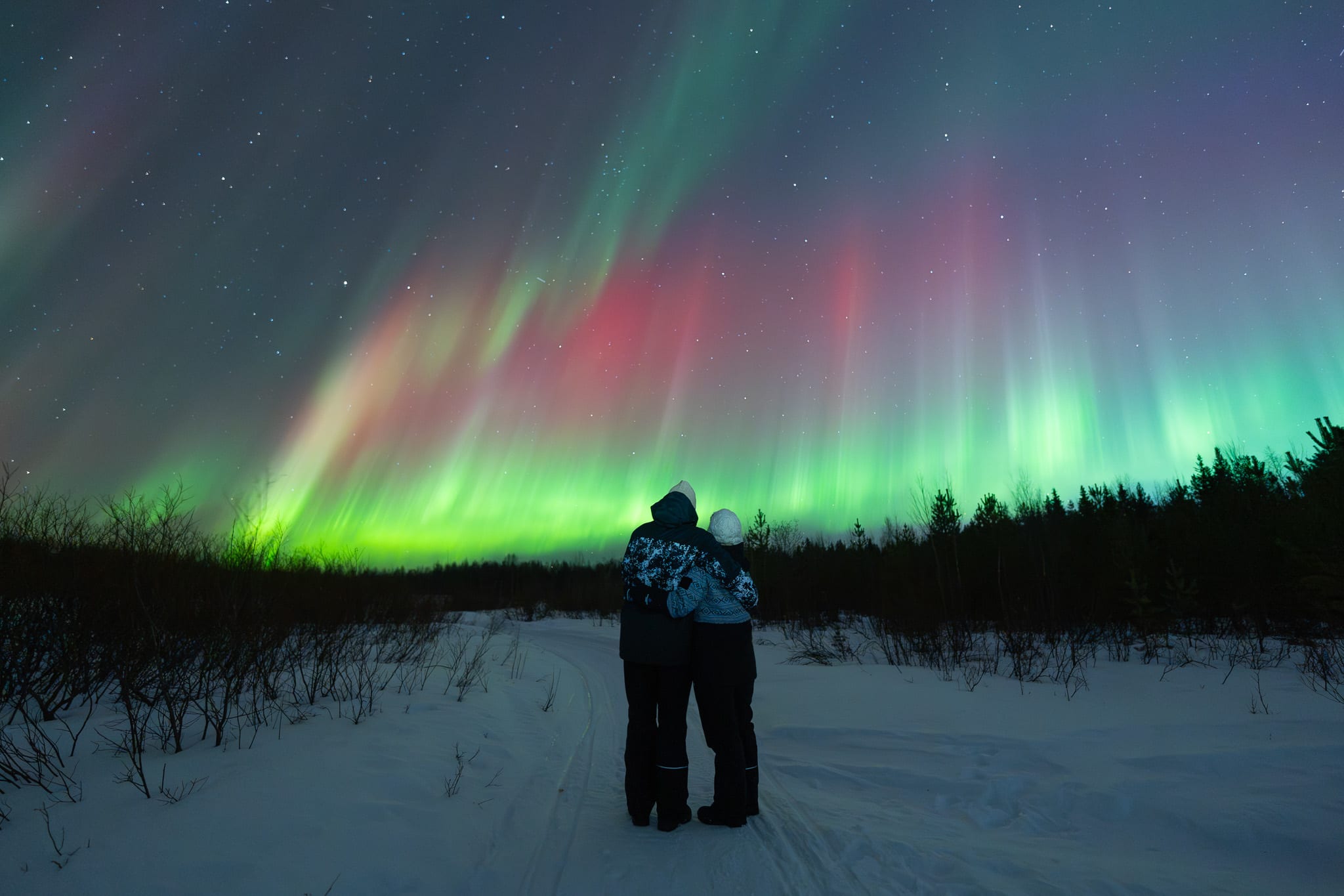 Die Fahrtzeit für dieses unglaubliche Erlebnis ist fast unbegrenzt, d. h. Sie brauchen vielleicht nur 3 Stunden außerhalb von Levi zu fahren, um das Nordlicht zu sehen, aber Sie können auch bis zu 9 oder 10 Stunden fahren, bis an die finnische oder norwegische Grenze, um die beste Sicht auf das Polarlicht zu haben (vergessen Sie nicht, Ihren Reisepass mitzubringen!). Alles hängt von den Wetterbedingungen in der Nacht und der Vorhersage des Polarlichts ab. Während der ganzen Nacht macht Ihr Lehrer mit einer professionellen Kamera Fotos von Ihnen unter den Nordlichtern, die er Ihnen am Tag nach der Exkursion in digitaler Form zusendet.