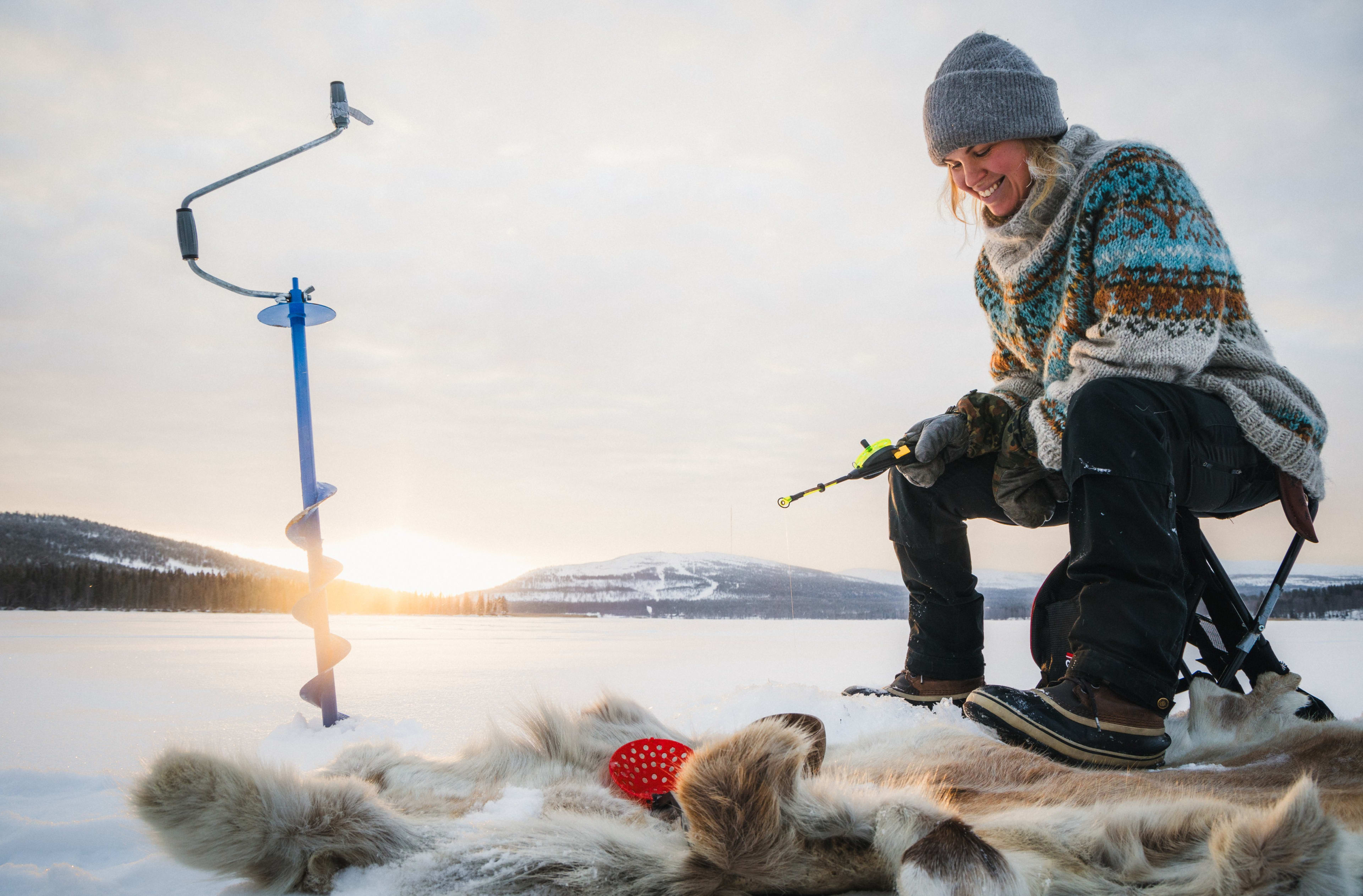 Tauchen Sie ein in die unglaublichen arktischen Landschaften Finnisch-Lapplands und entdecken Sie bei einem Ausflug zum Eisfischen in Pyhä-Luosto eine nützliche Fähigkeit, um dort zu überleben!