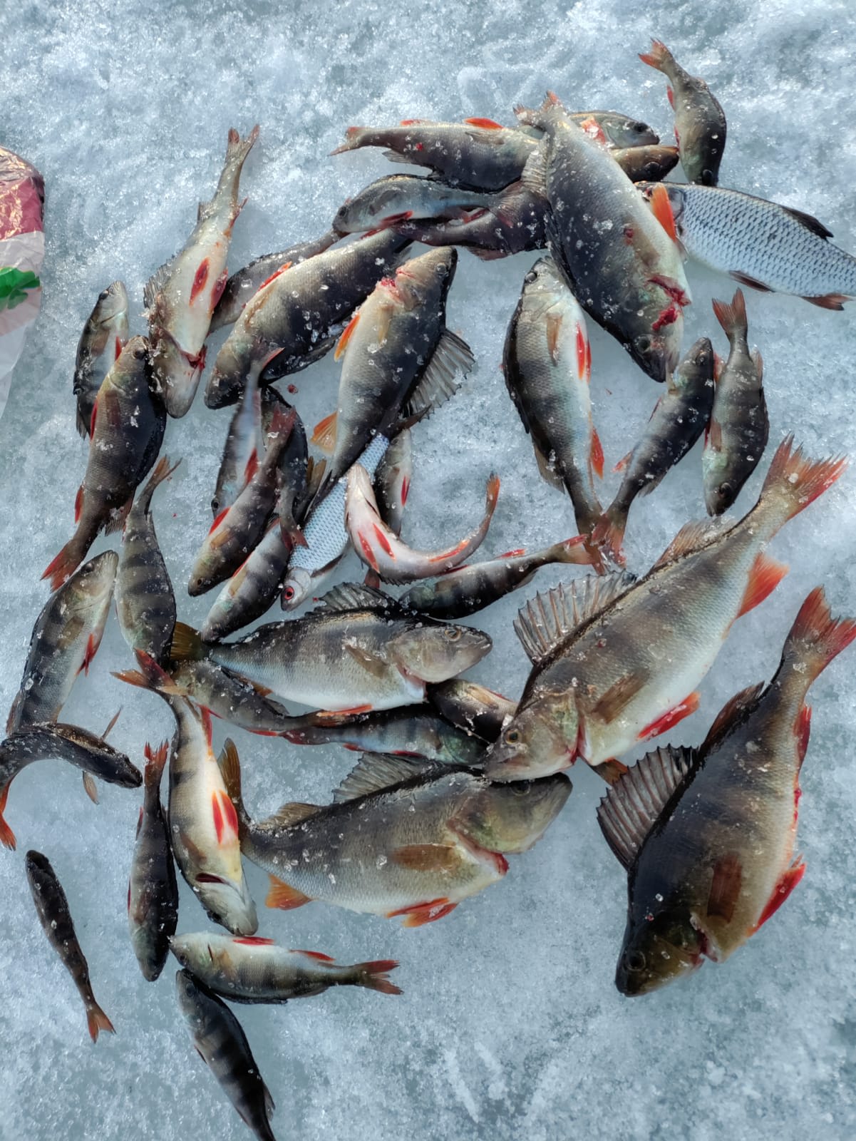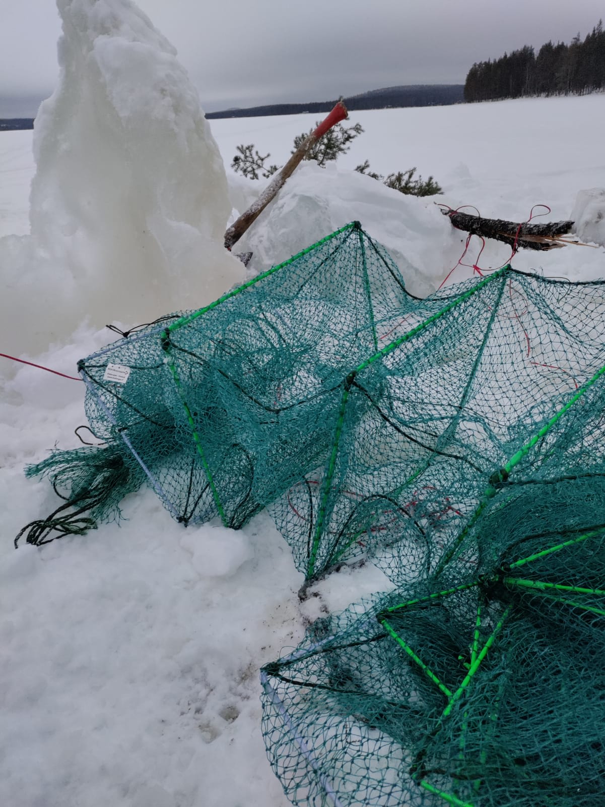 - Angelausrüstung (Eisbohrer, Angelrute, Schnur, Köder)