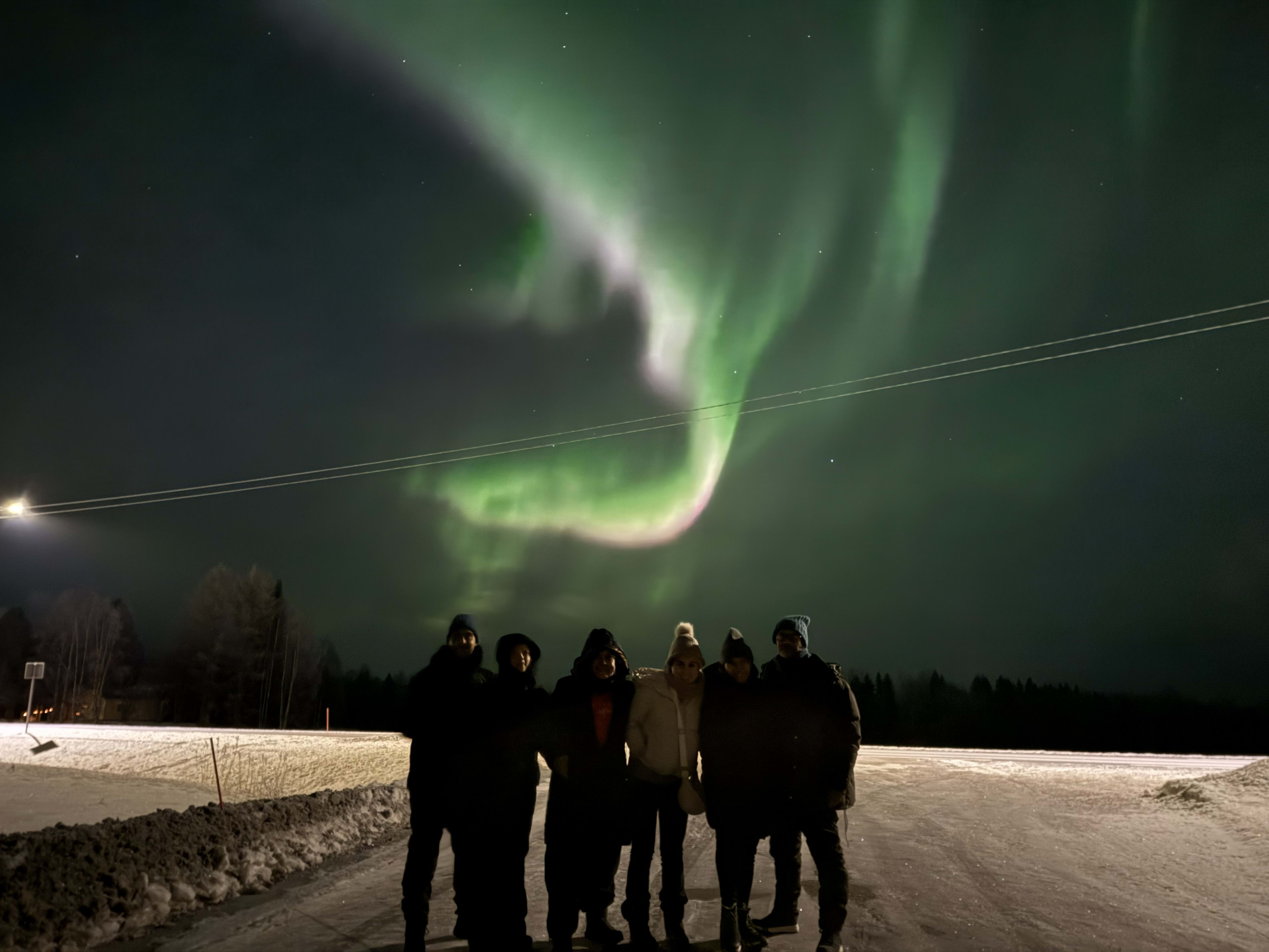 Abend in einer lappländischen Blockhütte, um nachts das Nordlicht zu sehen, Abfahrt von Rovaniemi.