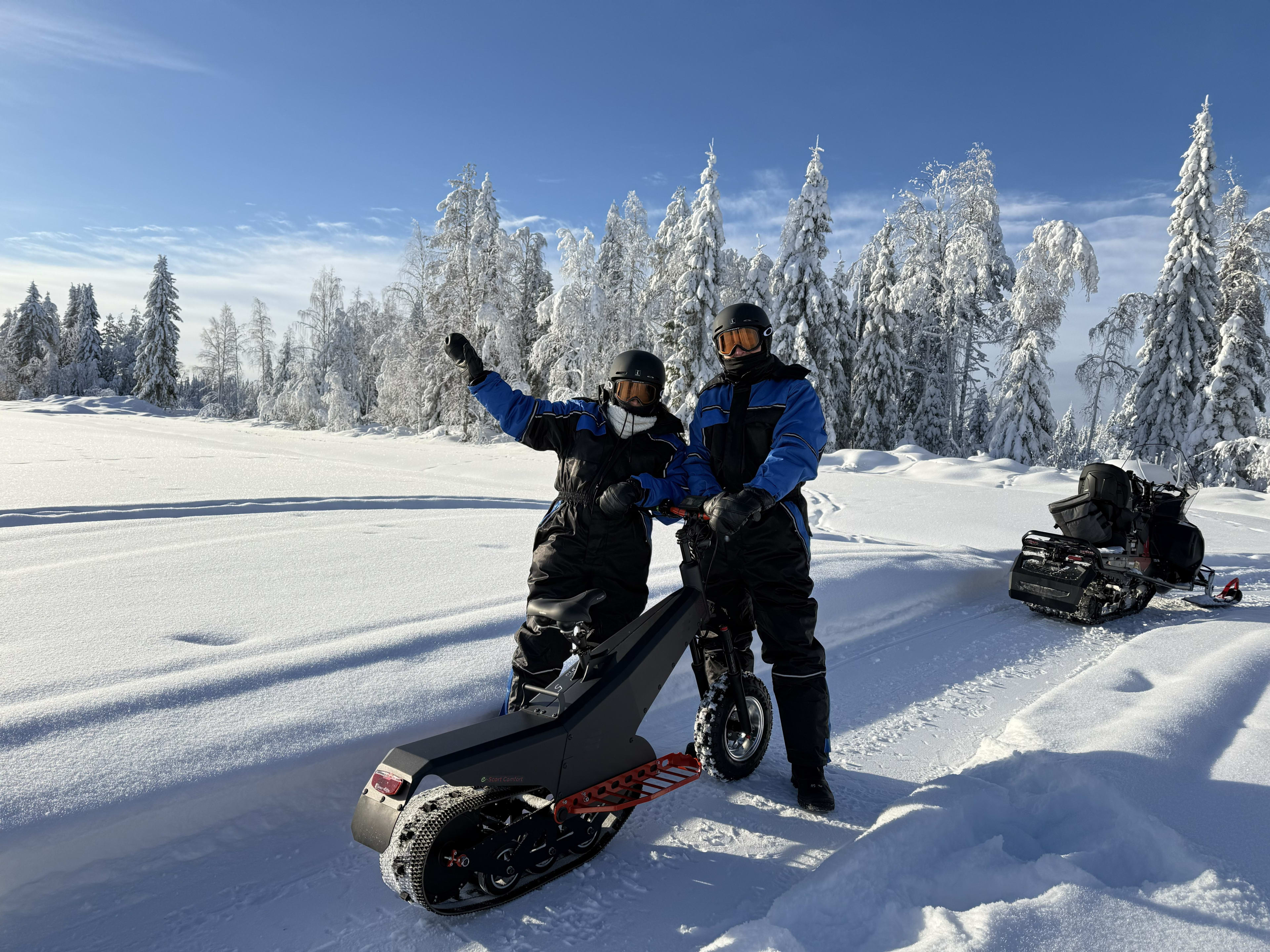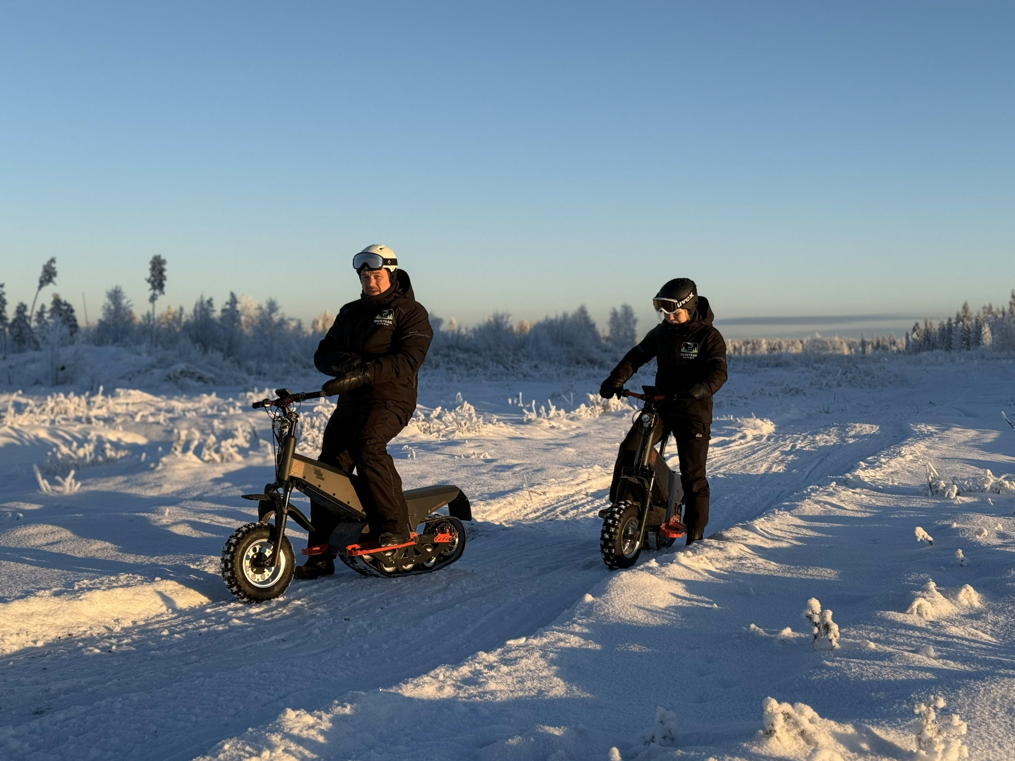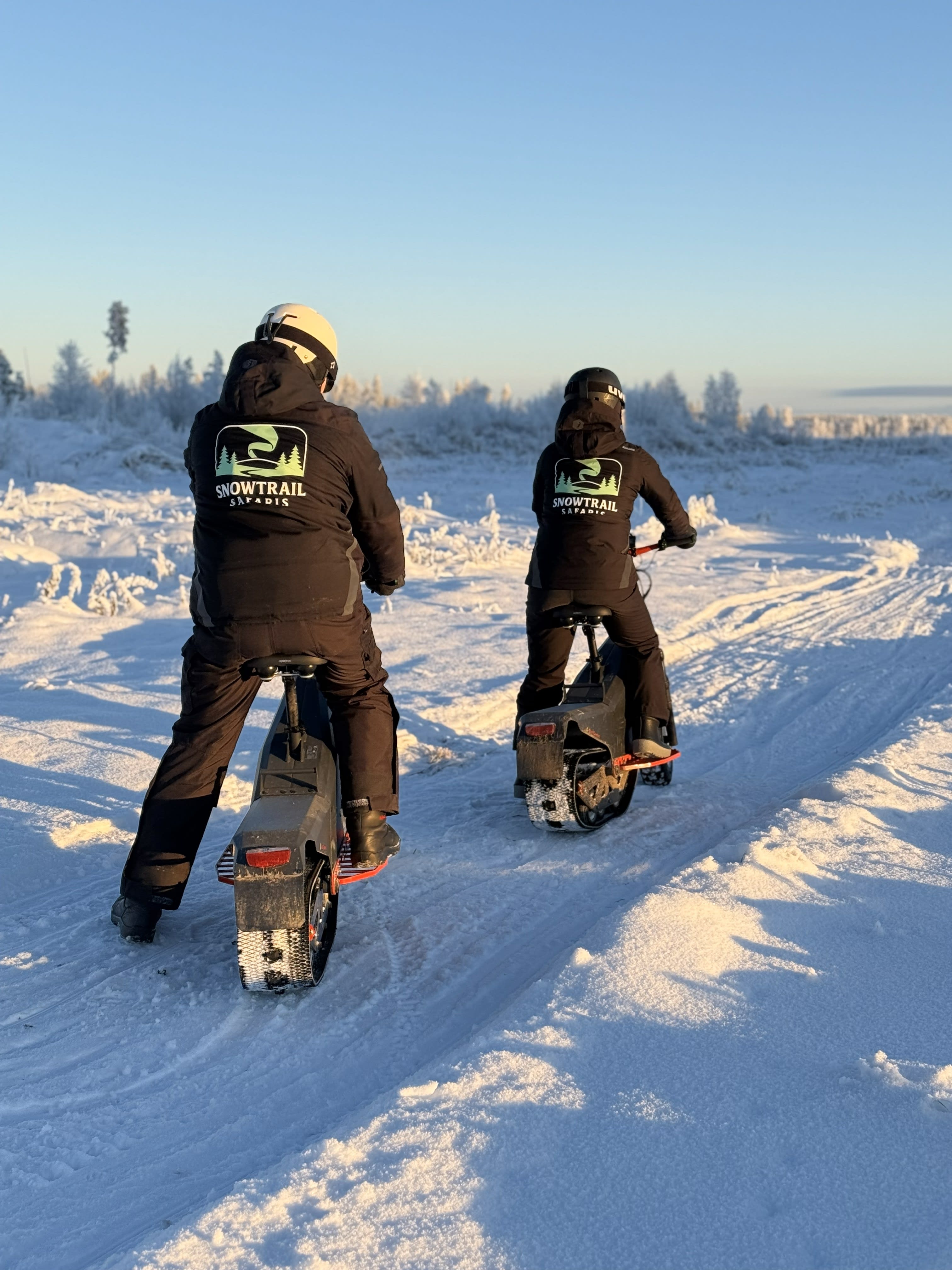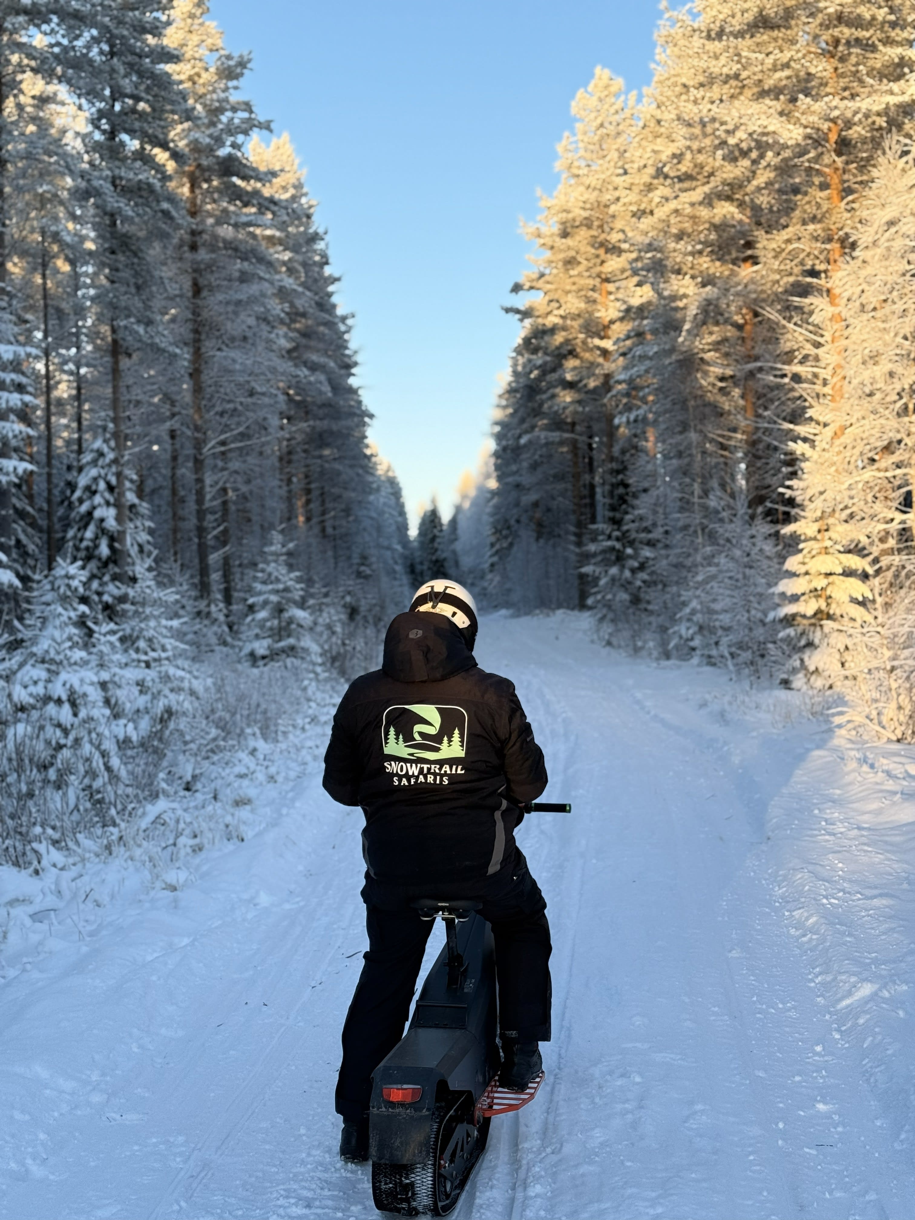 In Rovaniemi erwartet Sie ein originelles Erlebnis, das Begegnungen mit den bekanntesten Tieren Lapplands mit einer Fahrt unter freiem Himmel im Sattel einer ungewöhnlichen Maschine verbindet. Das Team von Snowtrail Safaris lädt Sie ein, das so genannte elektrische Rentier zu entdecken, eine Art Kombination aus Scooter und Schneemobil, mit dem Sie sich allein auf dem Schnee fortbewegen und dabei dank eines Elektromotors die Umwelt schonen können. Das Gerät ist vorne mit einem Schneereifen und hinten mit einer Raupe ausgestattet, hat einen Sitz und ist sehr einfach zu bedienen. Man braucht keinen Führerschein, um die Maschine zu steuern, man muss nur mindestens 15 Jahre alt sein! Die Kleinsten können in einem Schlitten, der vom Schneemobil des Führers gezogen wird, in aller Sicherheit an dem Abenteuer teilnehmen.