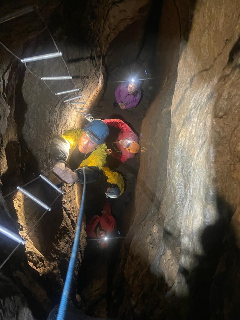- Ausrüstung: Helm mit Stirnlampe, Höhlenwandern, Stiefel und Klettergurt.