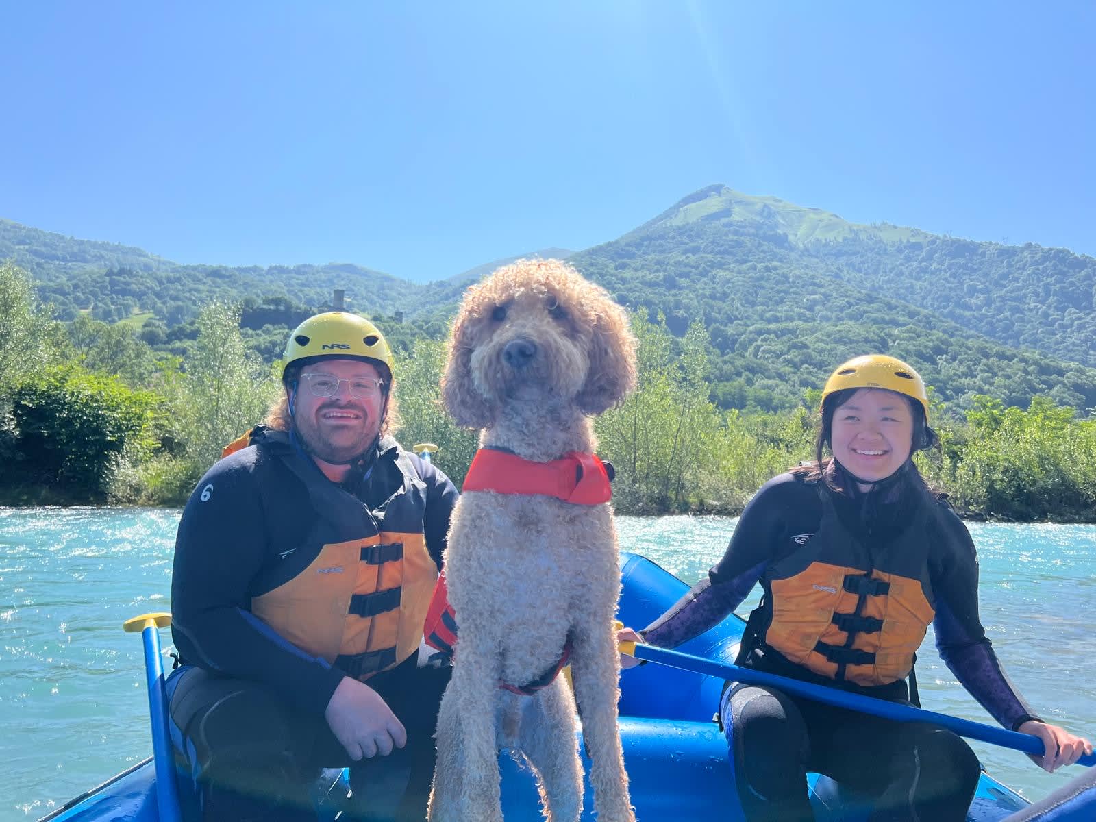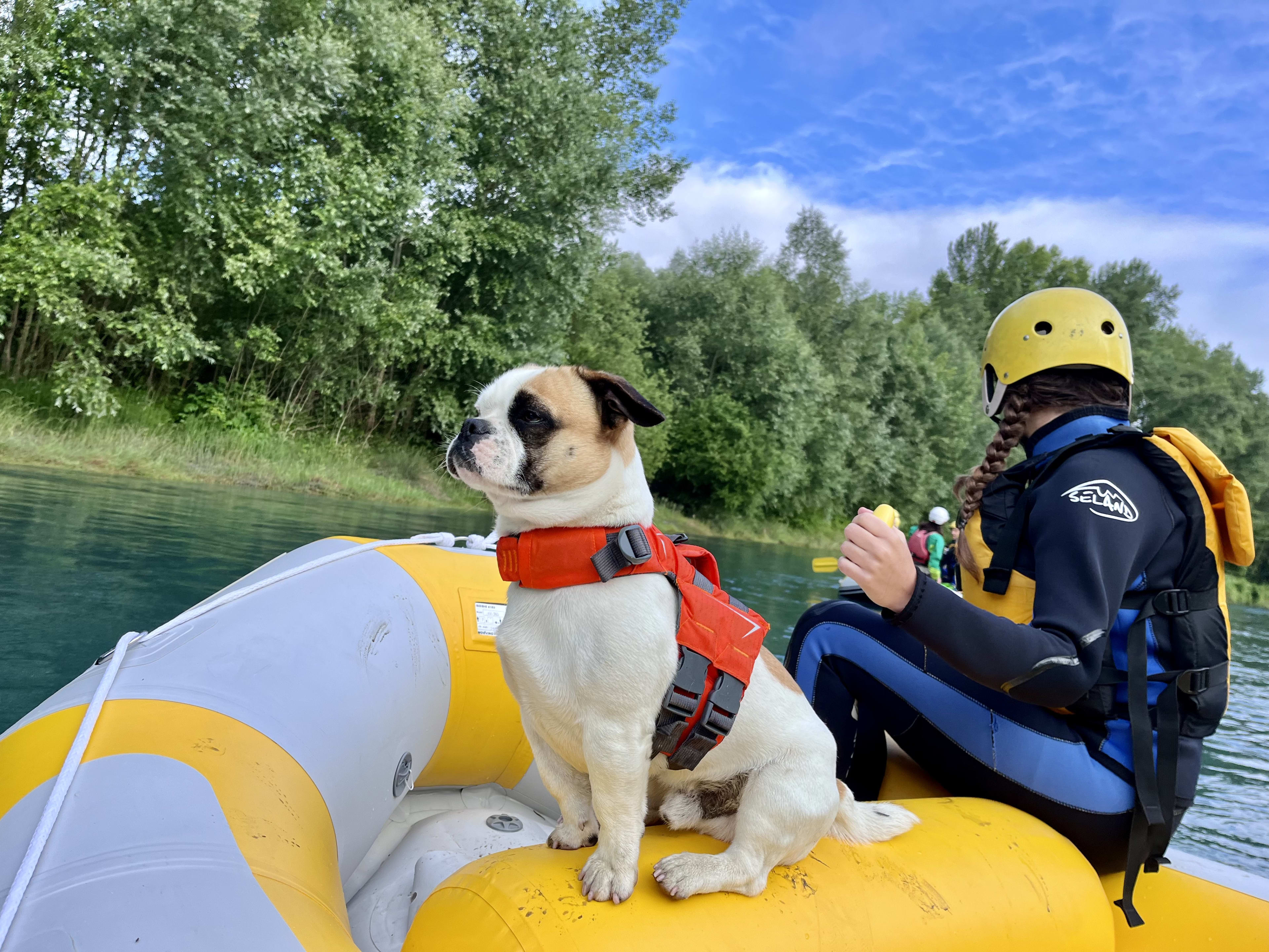 Diese für Anfänger zugängliche Aktivität lädt Sie dazu ein, das Rafting mit Ihrem Hund auf der Gave de Pau in den Hautes-Pyrénées auszuprobieren!