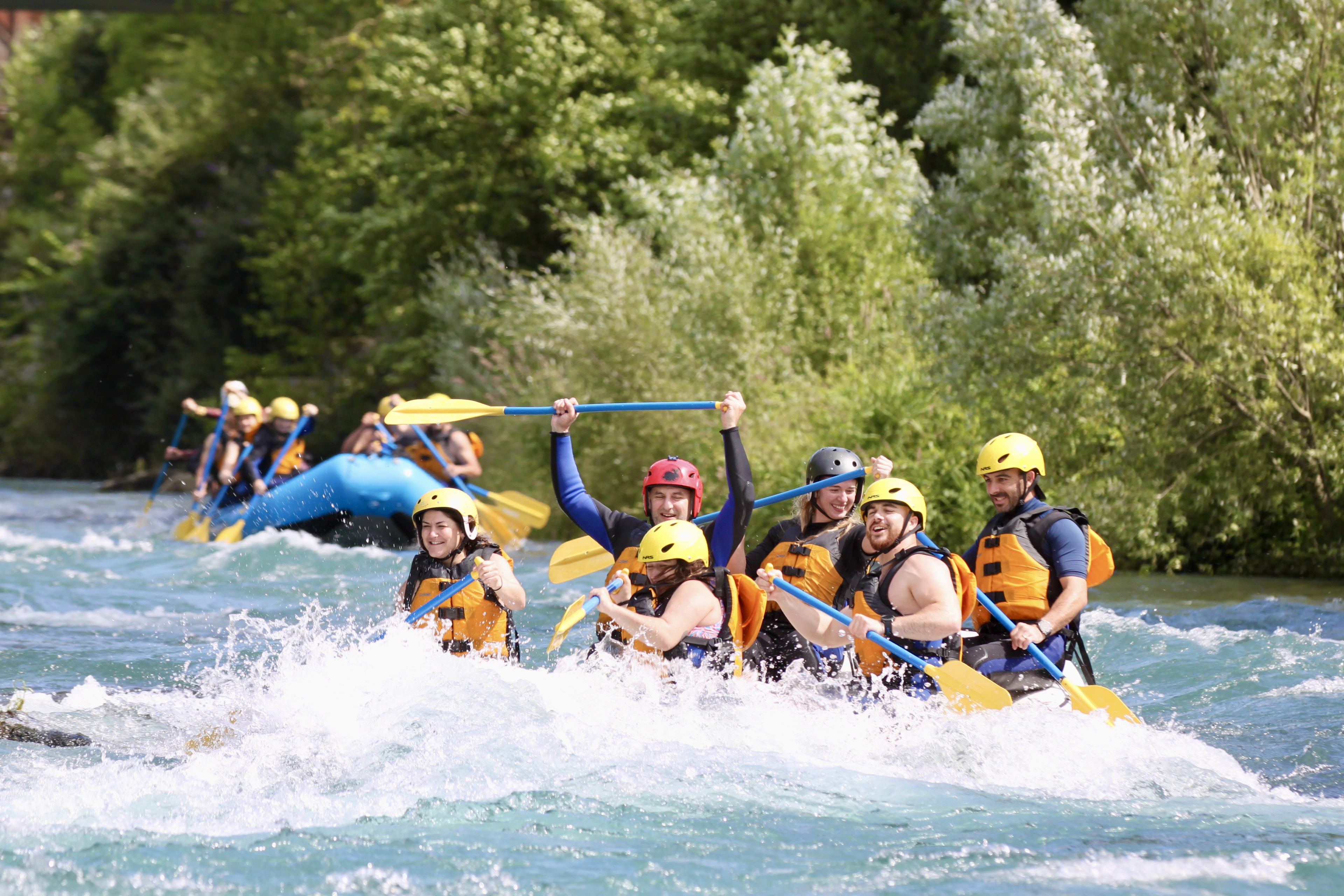 Zusammen mit Ihren Freunden oder Angehörigen müssen Sie Ihre Koordination finden und als Team arbeiten, um die Stromschnellen der Klassen 2 und 3 erfolgreich zu befahren. Insgesamt erwarten Sie ca. 2 Stunden Mini-Rafting auf dem Gave de Pau - plus eine zweite Wildwasseraktivität am Nachmittag, wenn Sie sich für den Ganztagesausflug entscheiden! In jedem Fall erwartet Sie ein unglaubliches Erlebnis vor der atemberaubenden Kulisse der Hautes-Pyrénées, zwischen Argelès-Gazost und Cauterets.