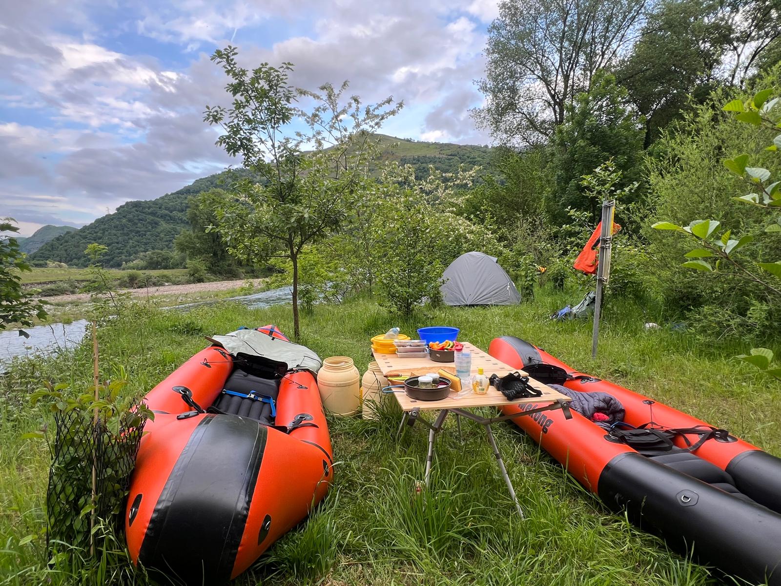 - Wir treffen uns an der Basis, rüsten uns aus, bereiten die Ausrüstung vor und beladen die Flöße (1 Stunde).