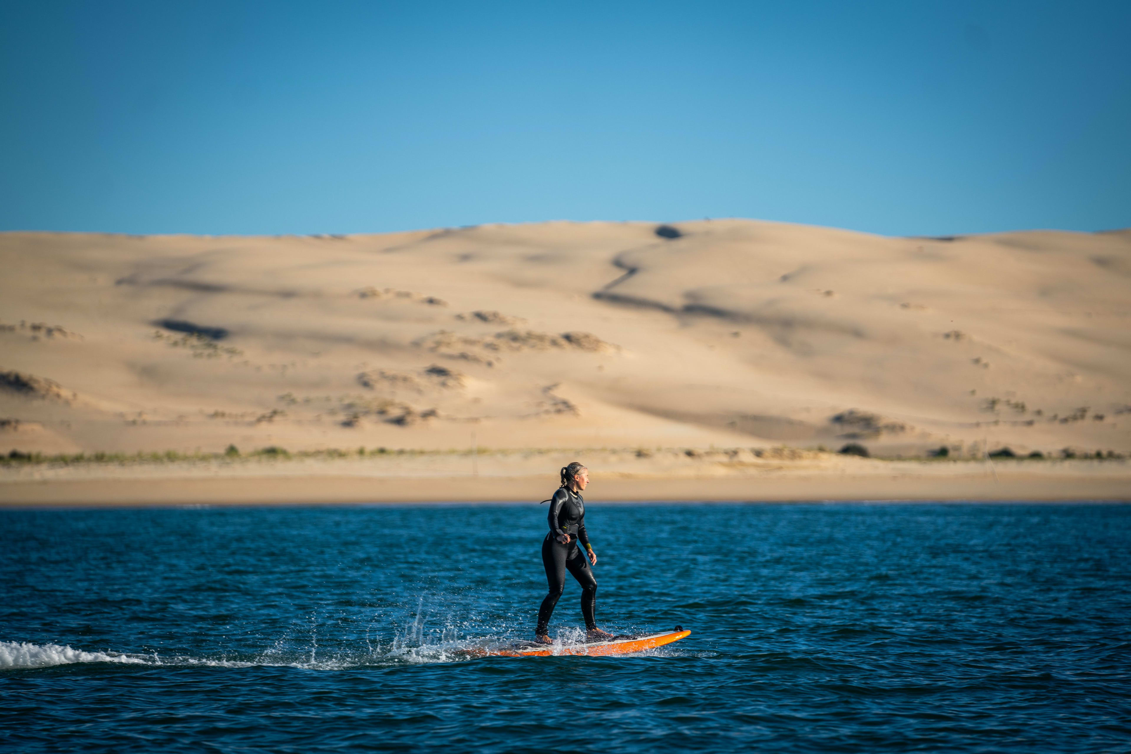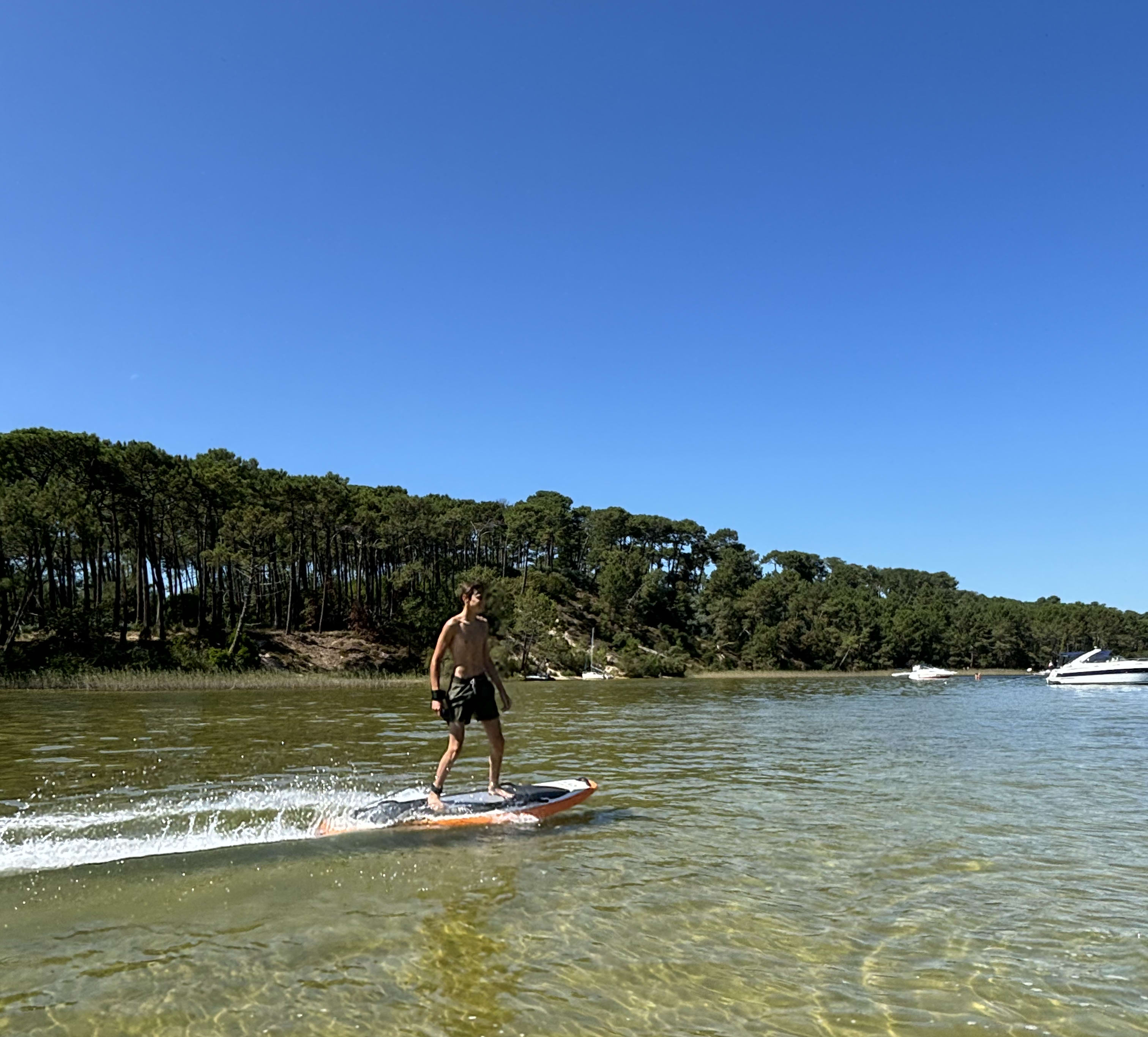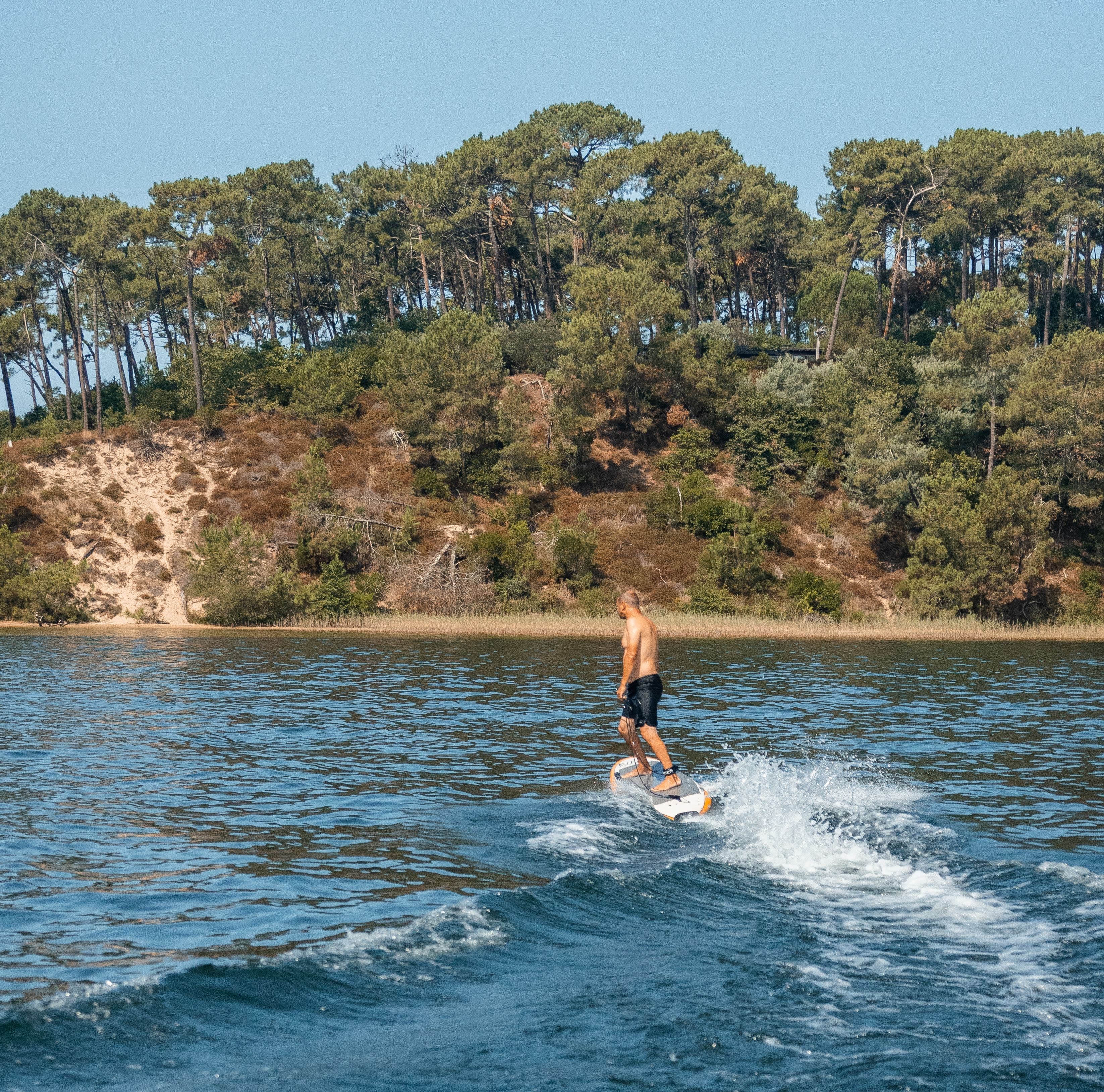 Probieren Sie das elektrische Surfen auf dem Biscarrosse-See aus und genießen Sie während Ihres Aufenthalts in den Landes ein einfaches und zugängliches Fahrerlebnis für alle!