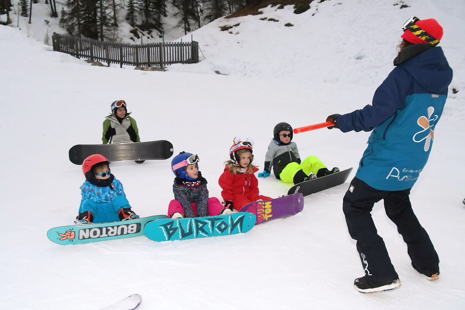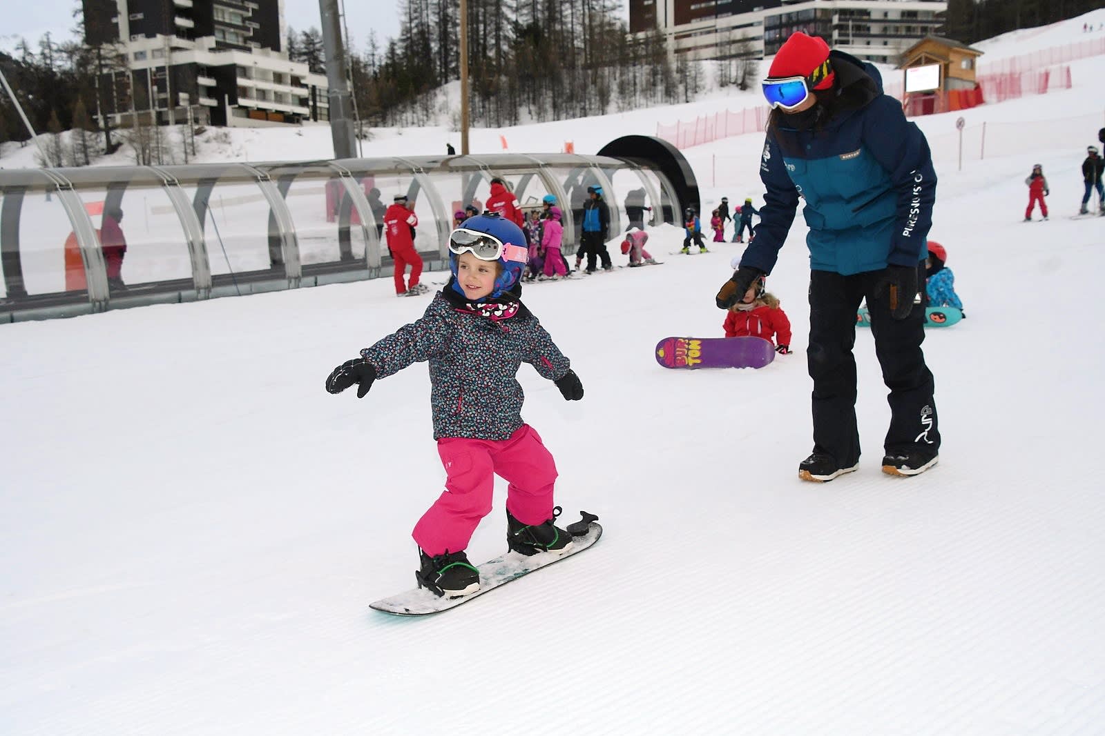 Eine 1-stündige Einführung in das Snowboarding in Vars für Kinder von 3 bis 7 Jahren.