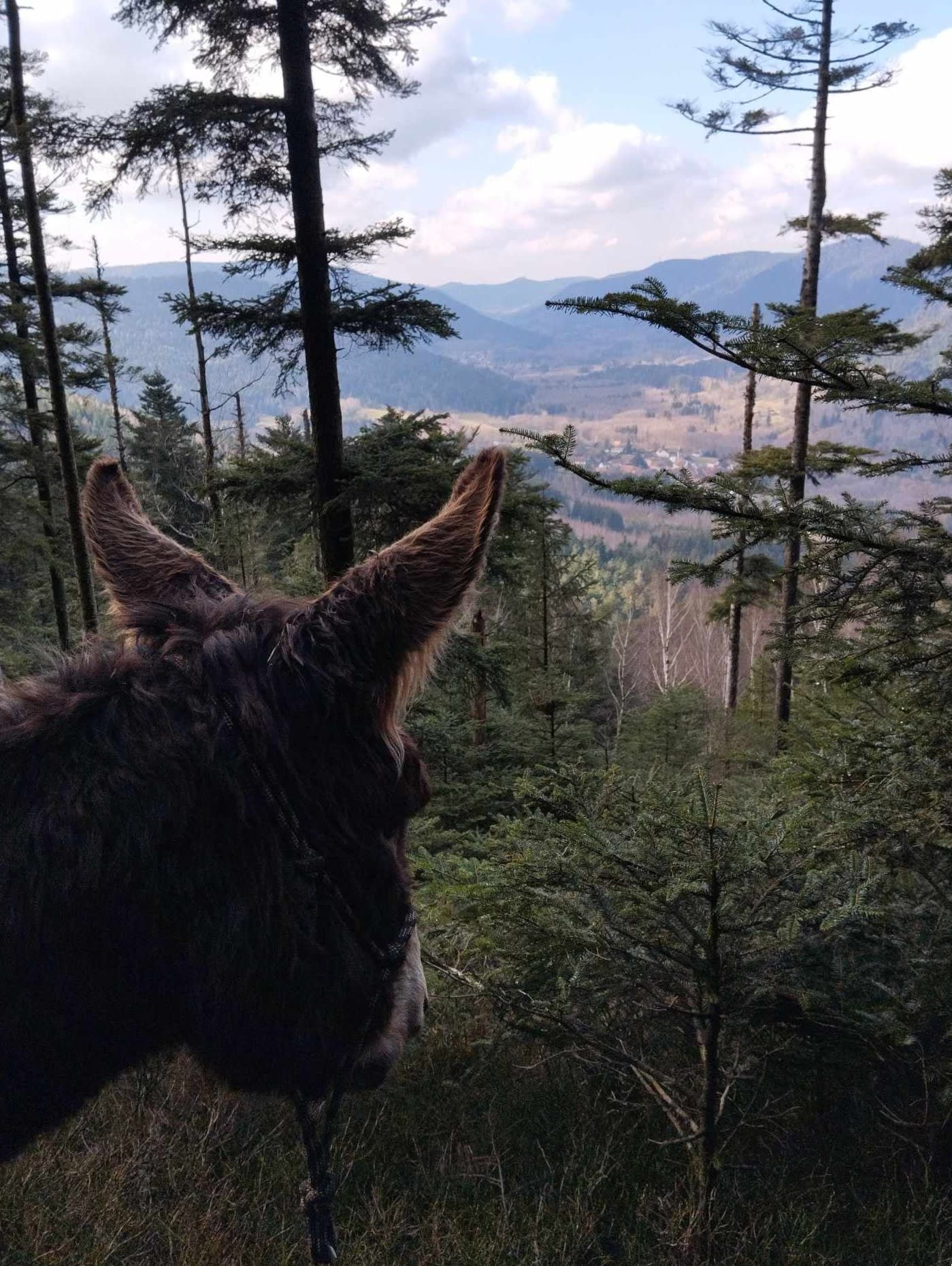 - Esel und notwendige Ausrüstung: Rucksack, Satteltaschen, Seile
