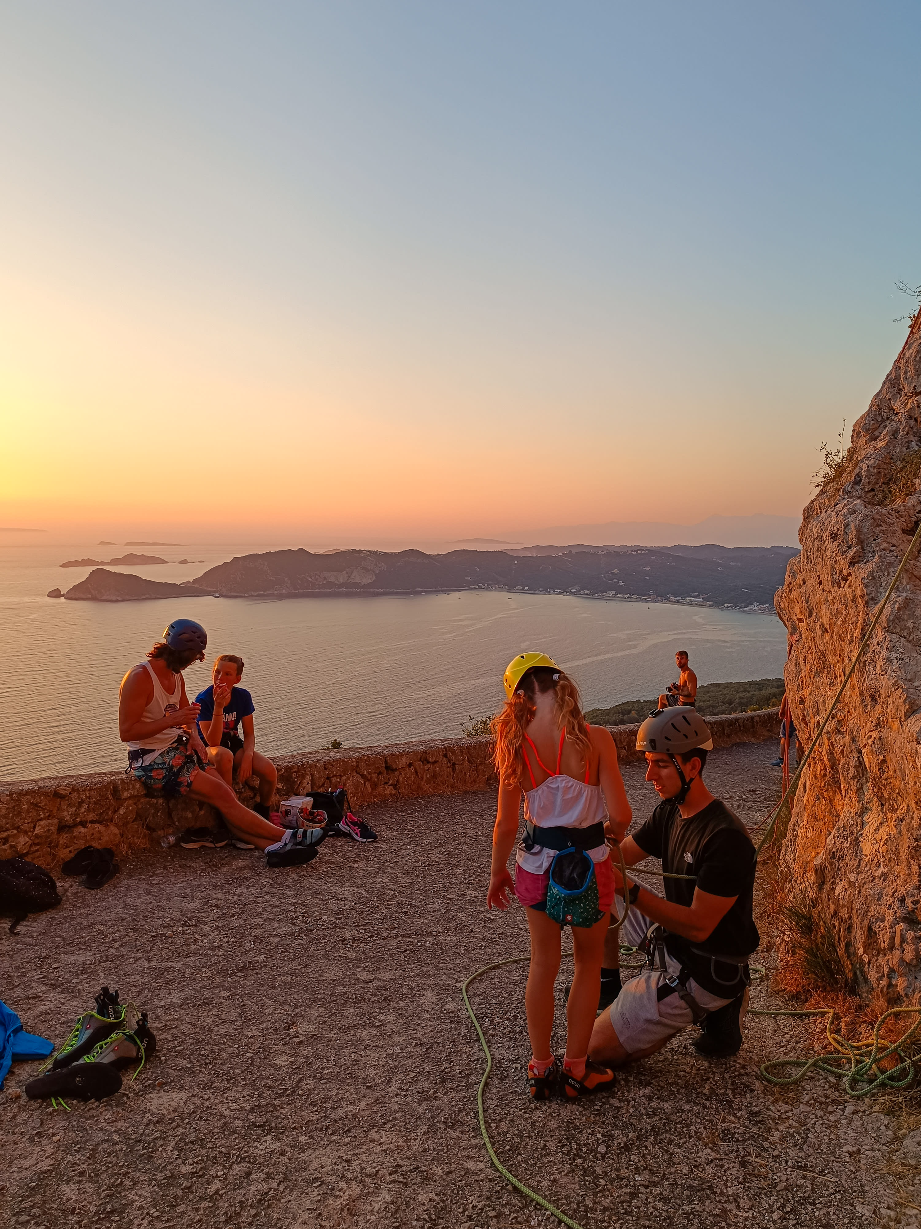 Wenn Sie am Aussichtspunkt angekommen sind, der sich direkt am Ende des berühmten Eselspfads von Korfu befindet, treffen Sie auf den fachkundigen Ausbilder, der Sie während Ihres Anfänger-Klettererlebnisses von Makrades auf Korfu begleiten wird. Er wird Sie begrüßen und Ihnen erklären, wie die Aktivität abläuft, und Ihnen einige Sicherheitshinweise geben, die Sie beachten sollten. Er wird Ihnen die gesamte notwendige Ausrüstung zur Verfügung stellen, einschließlich Kletterschuhe, Seil, Karabiner, Chalkbag und Gurt.