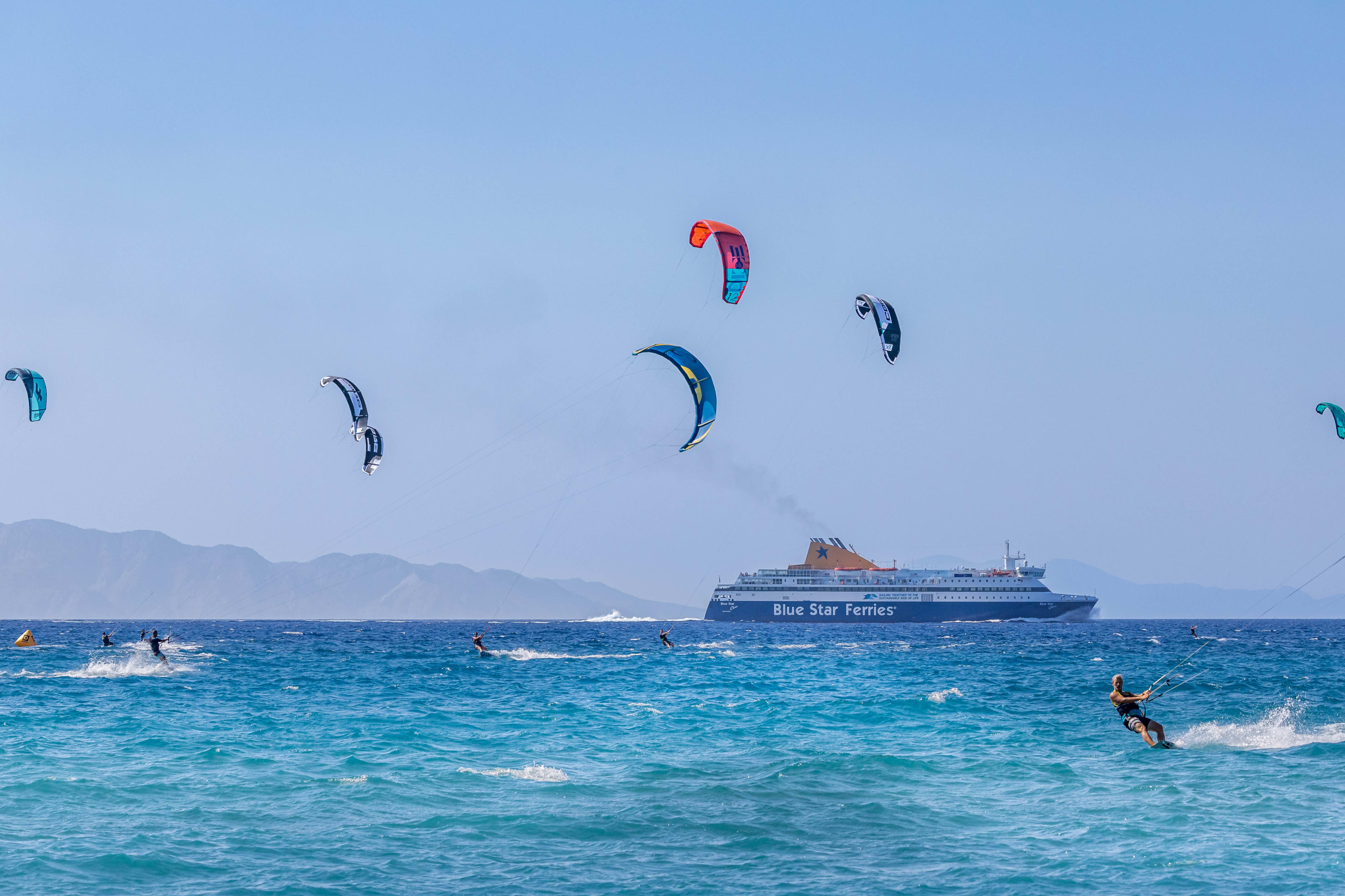Verbessern Sie Ihre Kitesurfing-Fähigkeiten in einem Kurs für Fortgeschrittene am wunderschönen Theologos Beach auf Rhodos.