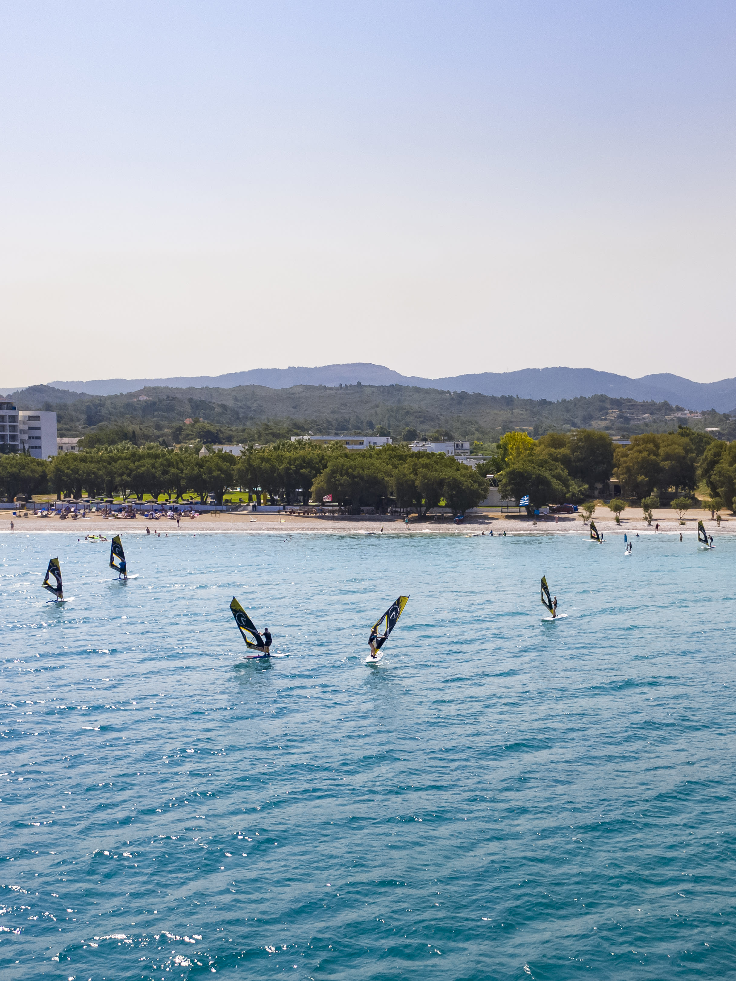 Im Surf- und Kitecenter am Theologos Beach können Sie einen Kurs wählen, der Ihrem Niveau entspricht. Für die Schulungen steht modernstes und hochwertiges Material zur Verfügung. Am Zentrum können Sie auch die Einrichtungen nutzen, darunter Süßwasserduschen und Toiletten am Strand, einen Sitz- und Chill-out-Bereich mit WiFi, eine Strandbar, Sonnenliegen sowie Speisen und Getränke. Für das Erlernen des Windsurfens sind keine Vorkenntnisse erforderlich. In kleinen Gruppen und mit modernstem Schulungsmaterial lernen Sie das Windsurfen im Handumdrehen!