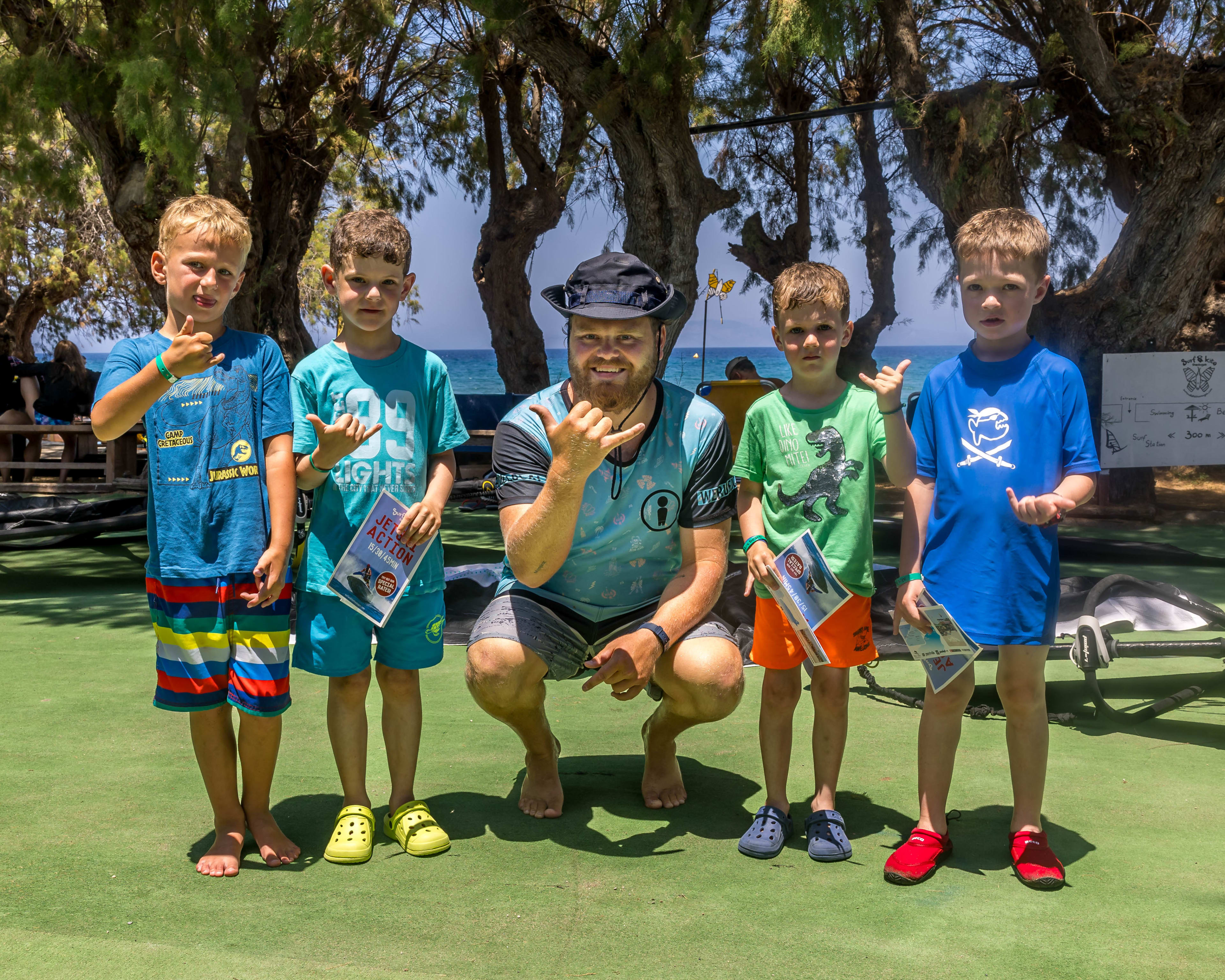Beim Einsteigerkurs beginnt der zertifizierte Lehrer mit den Grundlagen des Windsurfens. Sie beginnen mit der Theorie und einer Praxiseinheit, bevor Sie aufs Wasser gehen. In diesem Gebiet weht der Meltemi-Wind, der den Segeln Kraft verleiht. Morgens weht der Wind etwas langsamer und ist optimal für Windsurfing-Anfänger. Im Rahmen des 9-stündigen Kurses können Sie Ihren VDWS-Schein machen und werden so zu einem zertifizierten Windsurfer. Der international anerkannte VDWS bescheinigt offiziell die Grundkenntnisse im Windsurfen und berechtigt zum Windsurfen überall auf der Welt. Außerdem können Sie so schwierige Situationen beim Ausleihen von Material vermeiden.