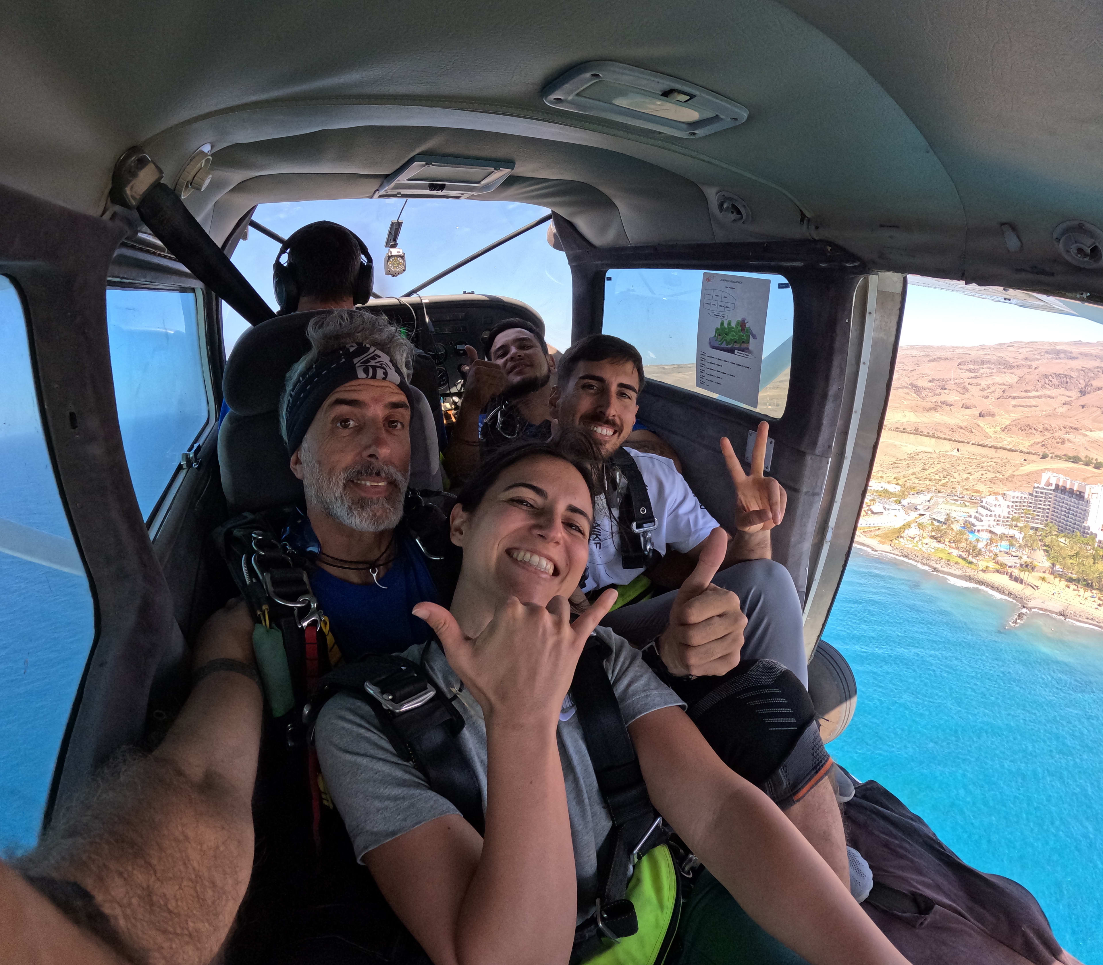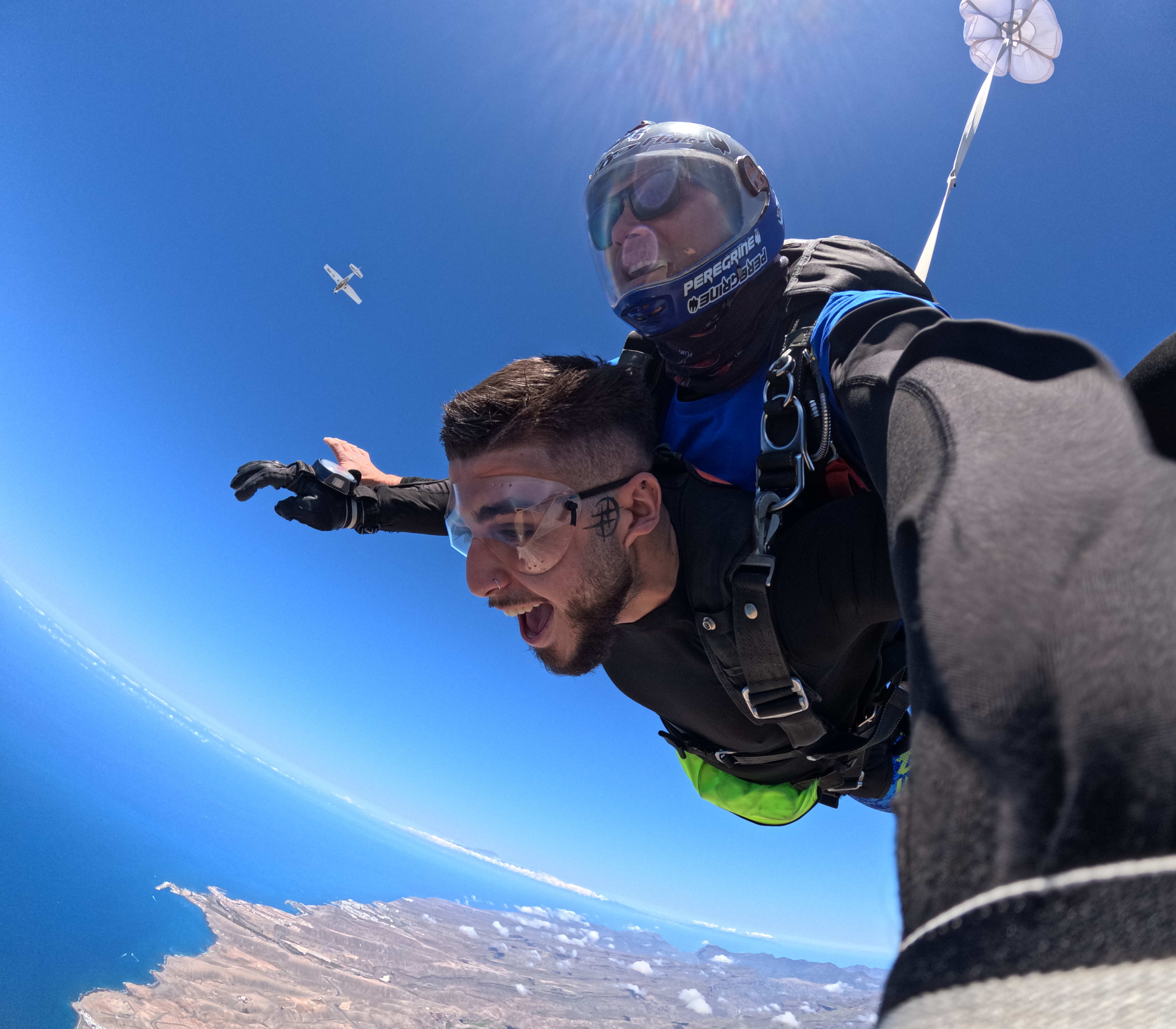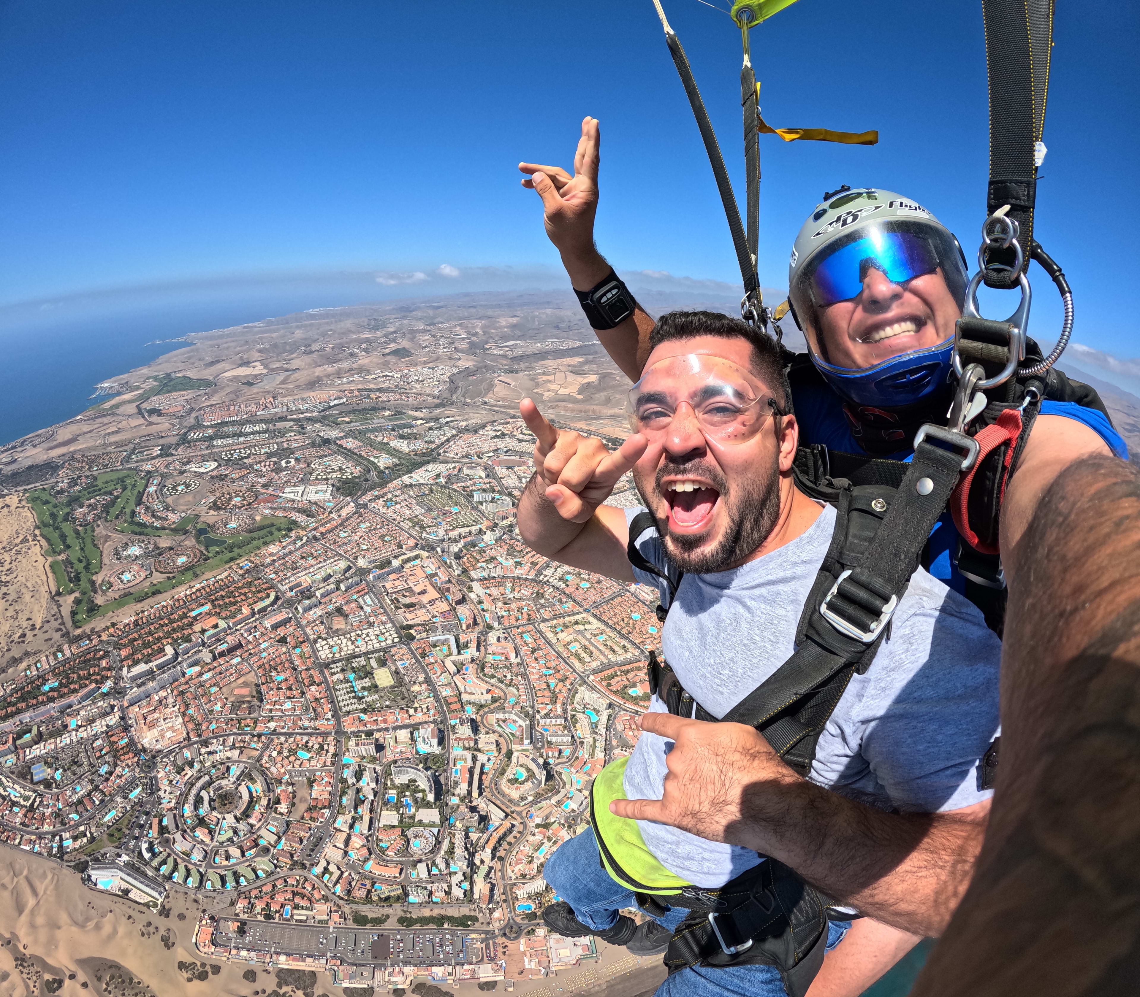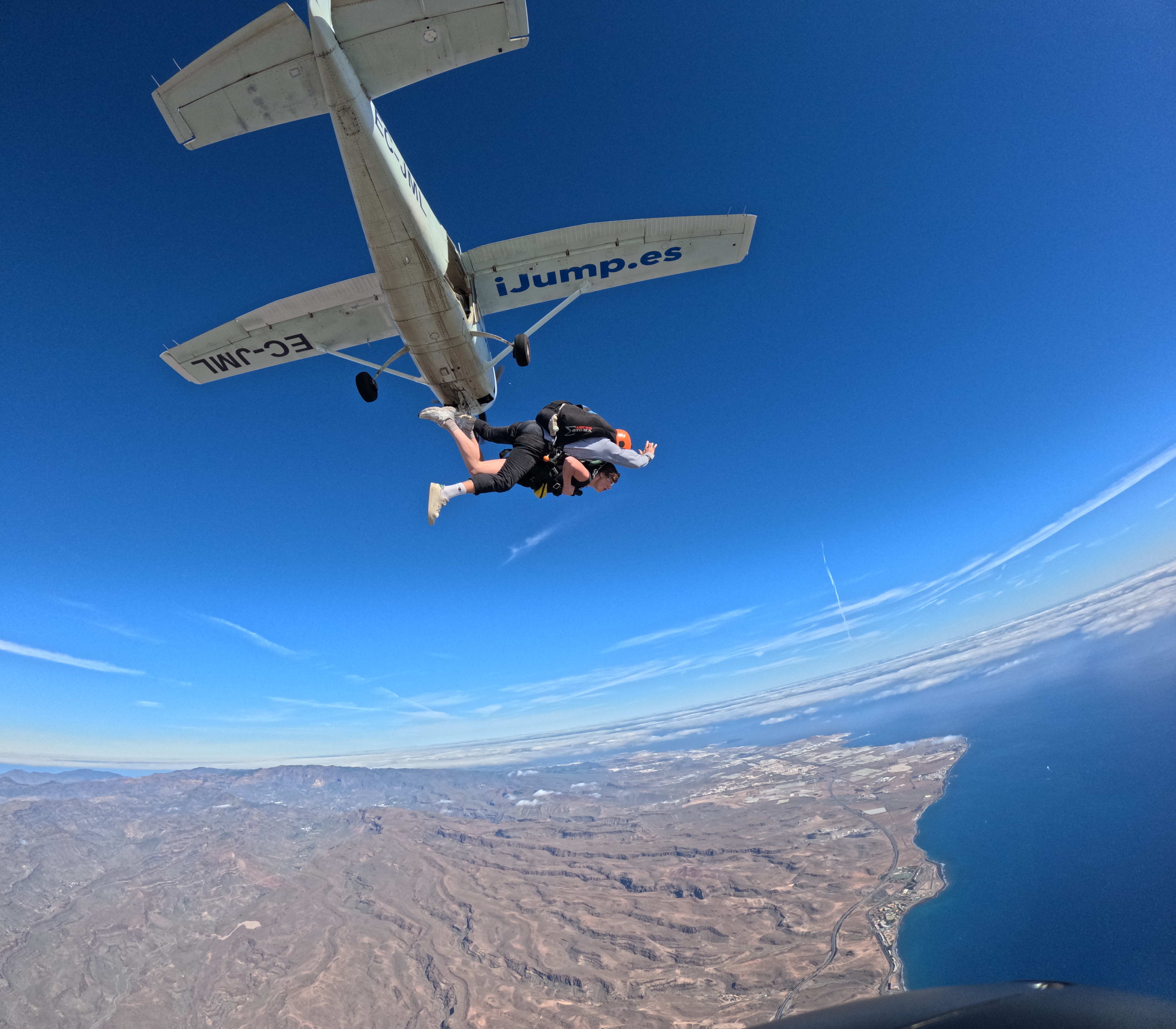 - Sobald der Pilot eine Höhe von ca. 3000 Metern erreicht hat, springen Sie und Ihr Tandemlehrer aus dem Flugzeug und befinden sich für ca. 30 Sekunden im freien Fall über den berühmten Dünen von Maspalomas mit über 200 km/h.