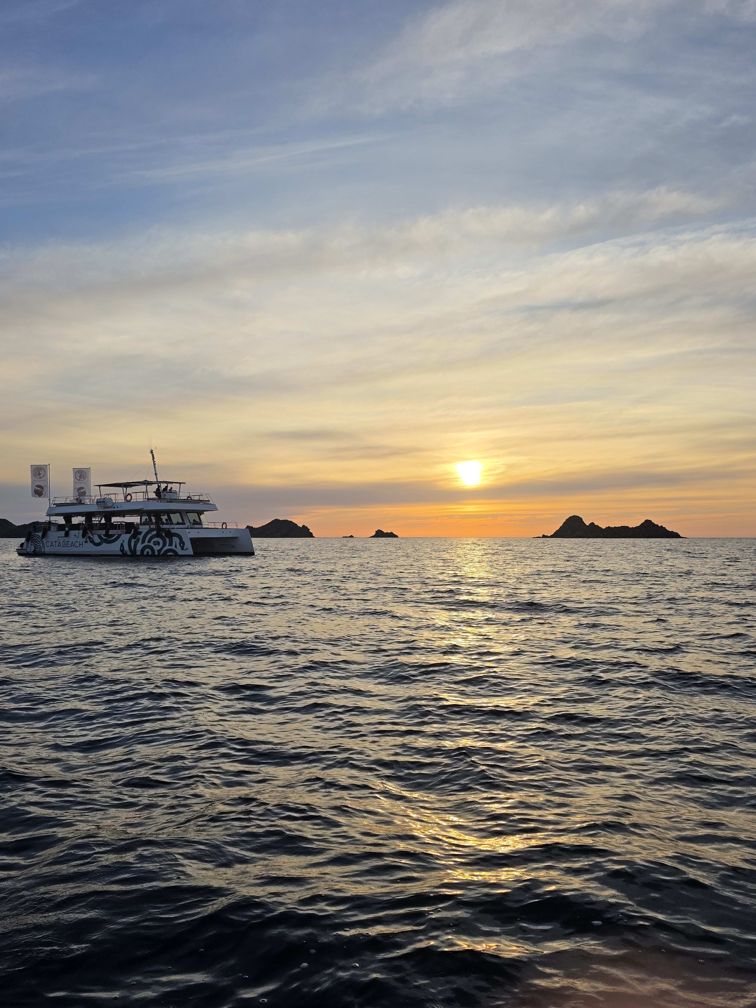 Erleben Sie einen der schönsten Sonnenuntergänge Korsikas bei einer Katamaranfahrt zu den Sanguinaires-Inseln, um Ihren Tag in Ajaccio abzurunden!