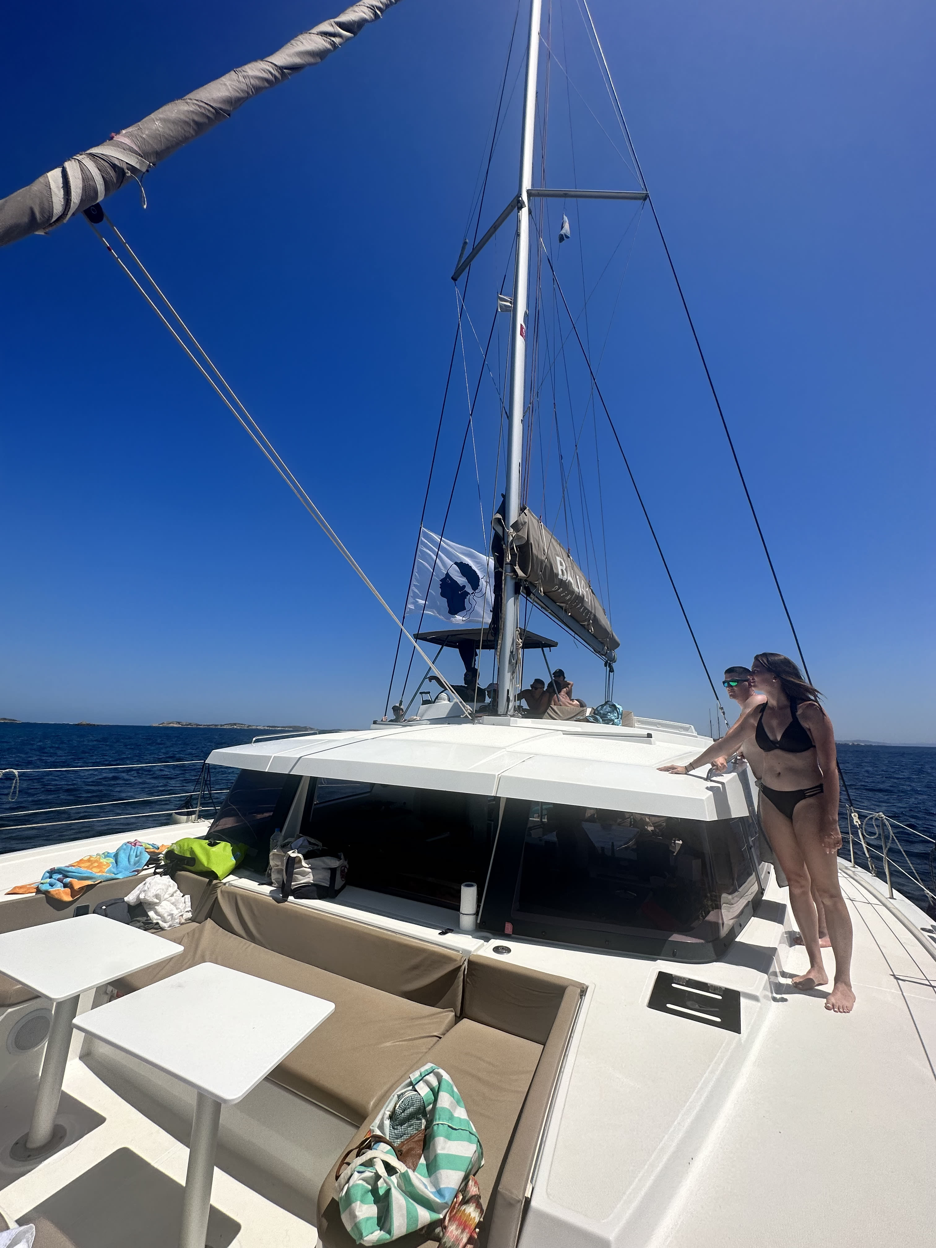 Gehen Sie an Bord eines wunderschönen Katamarans für einen Bootsausflug von Bonifacio aus mit Briséis Croisières!