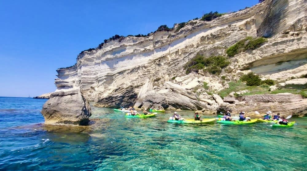 Lassen Sie sich von der Schönheit der korsischen Natur bei diesem Kajak- und Schnorchelausflug durch das Naturschutzgebiet Bonifacio bis zu den Klippen von Cala Sciumara beeindrucken!