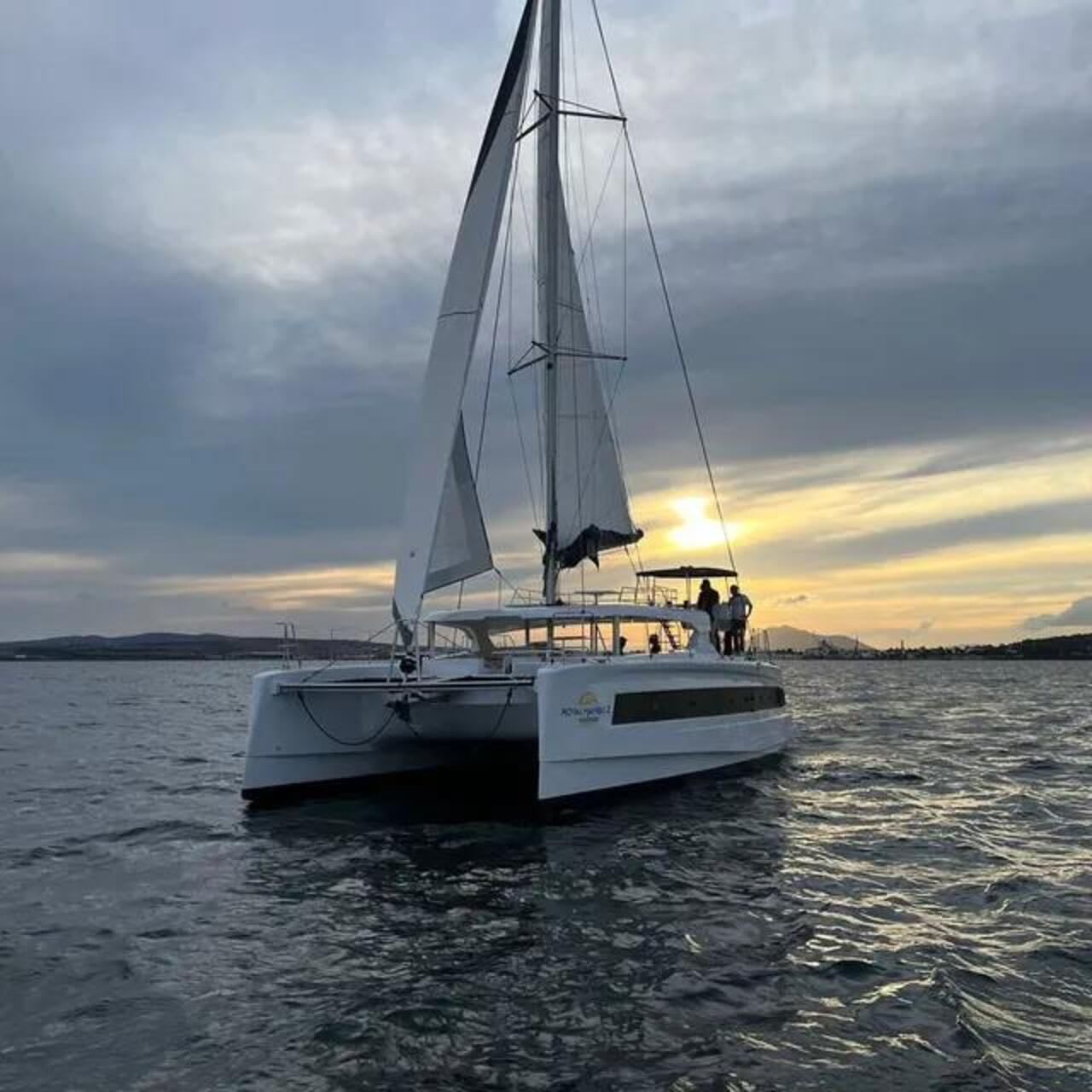 Katamaranausflug bei Sonnenuntergang mit Aperitif auf See ab Santa Giulia