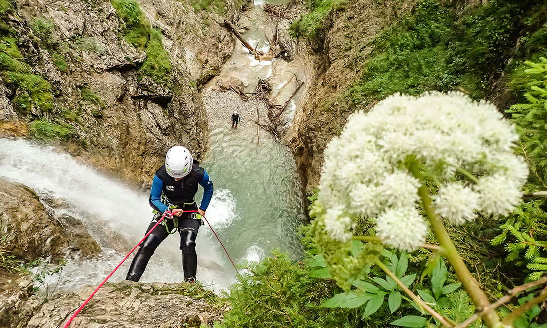 Sportlicher Canyoning-Ausflug im Strindenbach, Tannheimer Tal