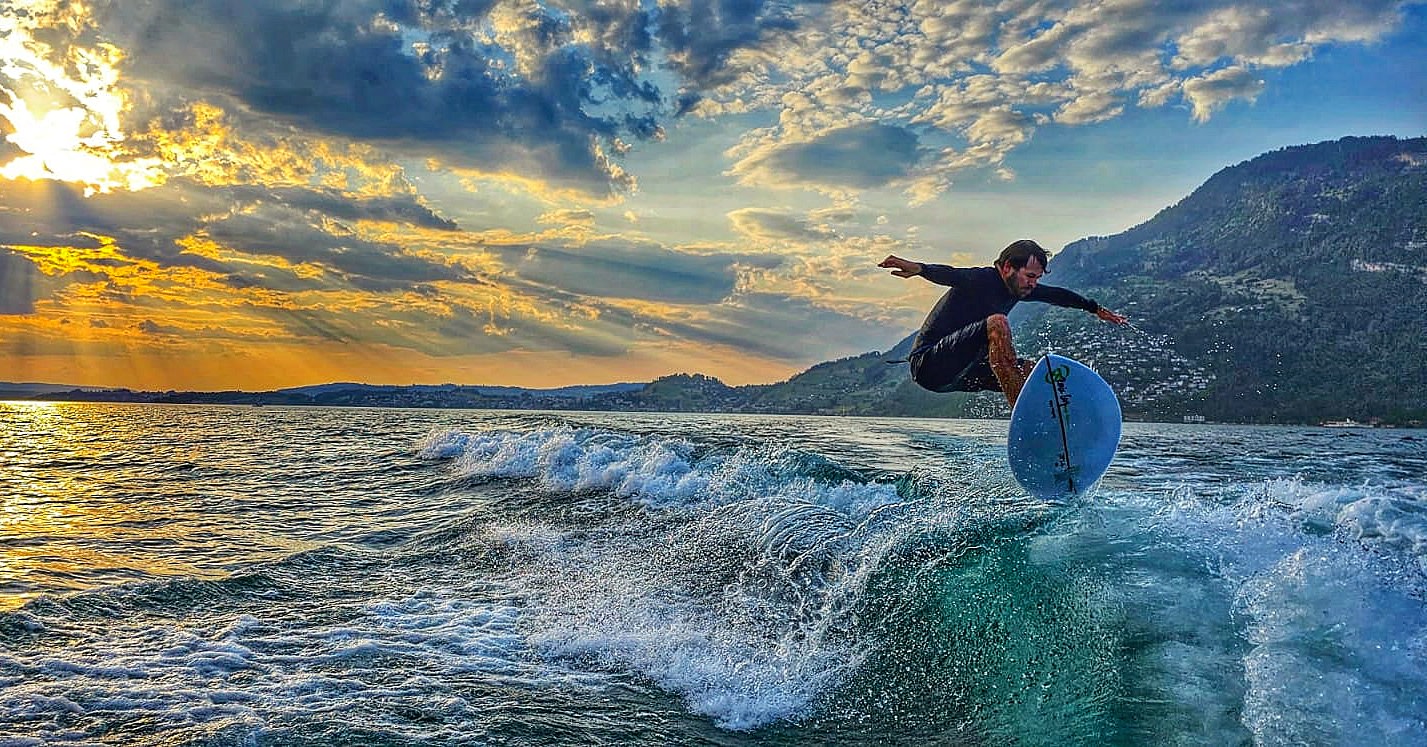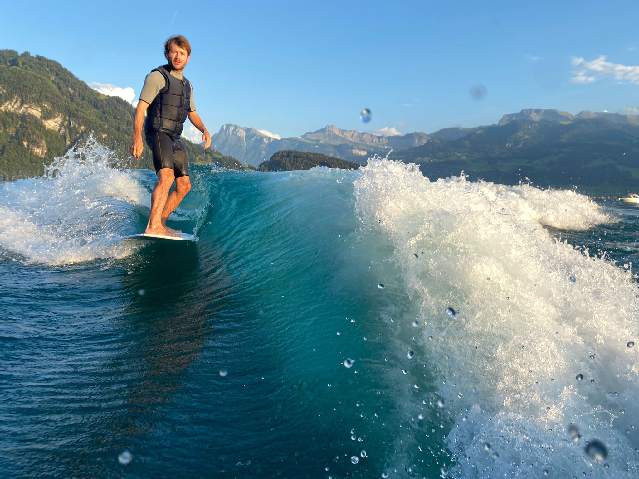 Haben Sie schon von Wakesurfing gehört? Sie surfen auf der Heckwelle, die sich hinter dem Boot bildet, ohne Schleppseil. Kommen Sie und probieren Sie es aus!
