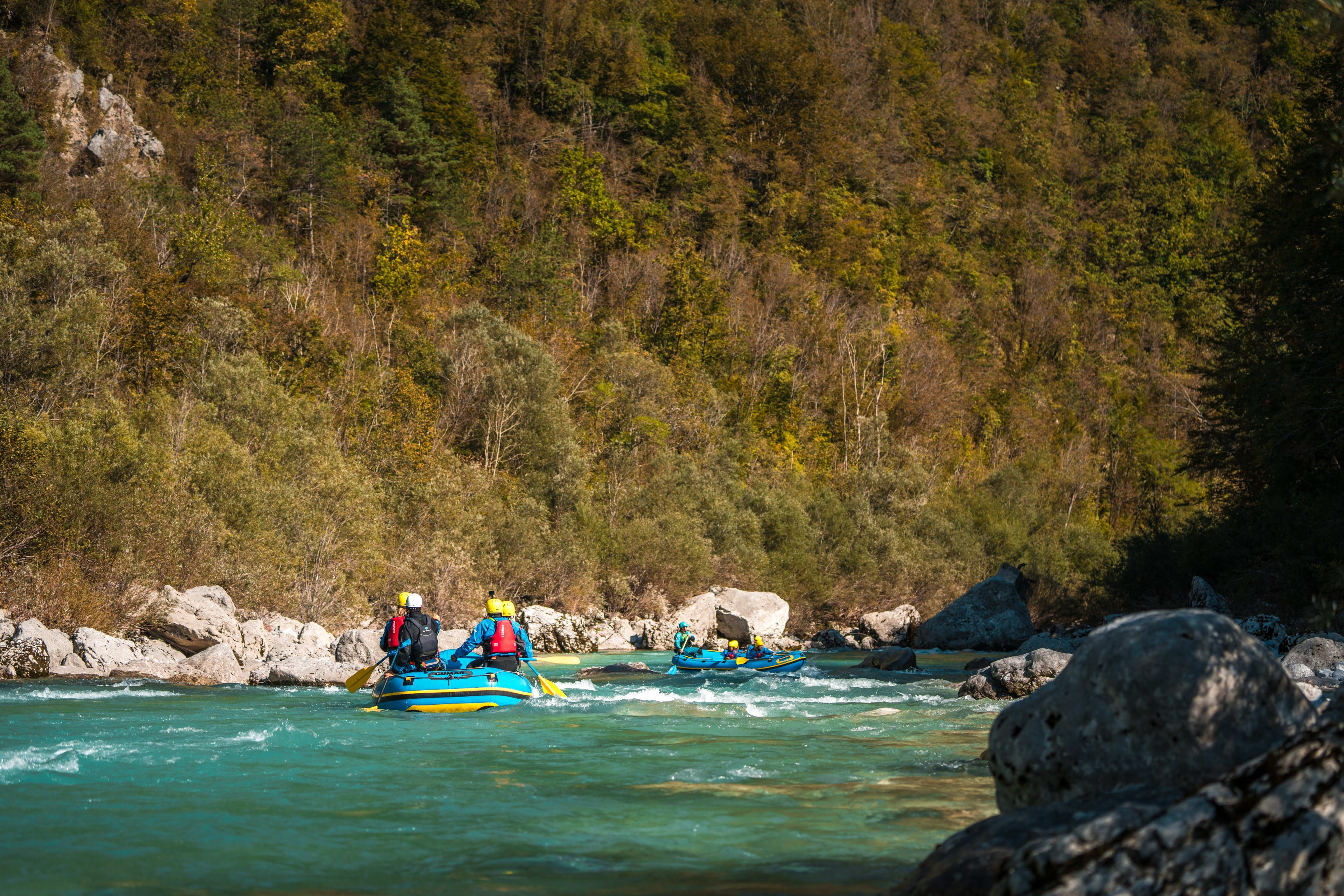 Diese Exkursion wird von einem außergewöhnlichen Team geleitet, das von sechsfachen Rafting-Weltmeistern gegründet wurde. Dieses einzigartige Niveau an Fachwissen bedeutet absolute Sicherheit und einen hohen pädagogischen Standard für alle Teilnehmer. Die 10 km lange Abfahrt beginnt in der Nähe der majestätischen Boka-Wasserfälle, die 106 Meter hoch sind, und führt über Stromschnellen der Grade II und III zwischen Srpenica und Trnovo. Ausgerüstet mit 5 mm Neoprenanzügen, um der Frische des alpinen Wassers zu trotzen, lernen Sie, Ihre Anstrengungen mit Ihrer Crew zu koordinieren, um Strudel und technische Hindernisse zu überwinden, während Sie Pausen einlegen, um in natürliche Pools zu springen oder in der Strömung zu schwimmen.