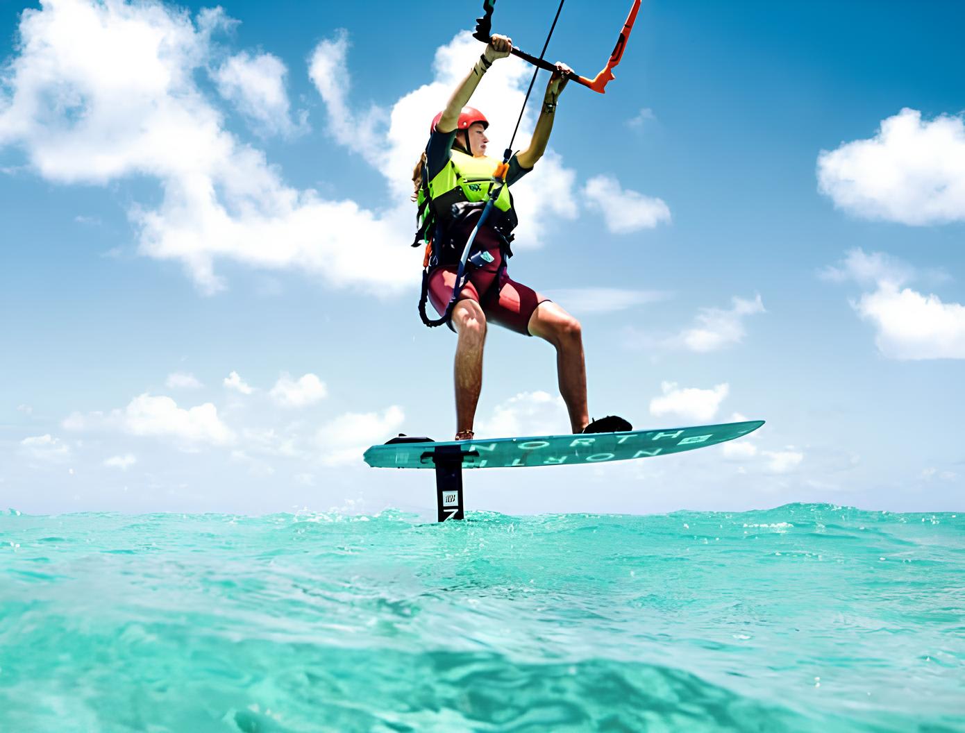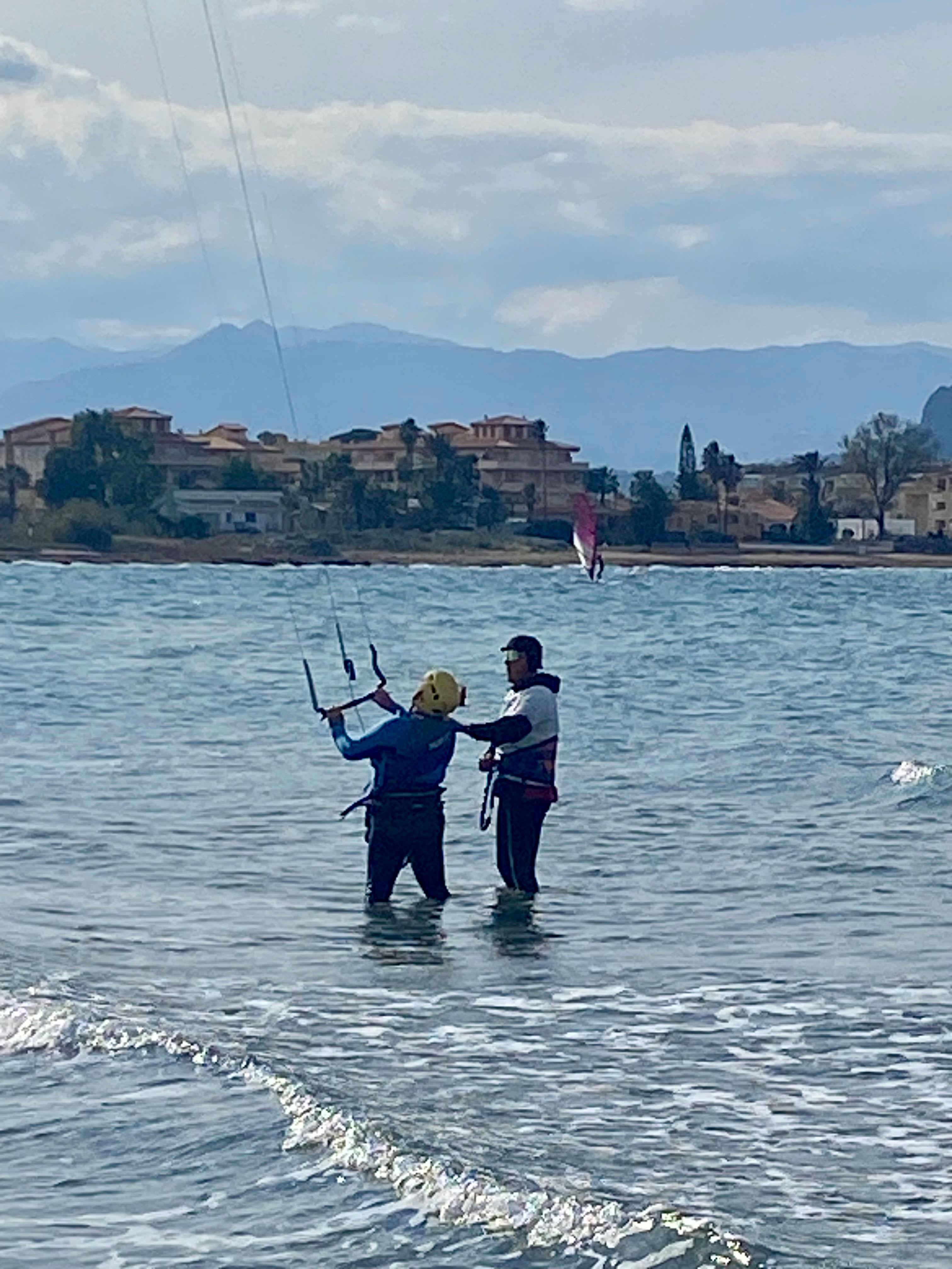 - Wasserübungen: Kontrolle des Kites oder Flügels im Meer und Erlernen des Gleichgewichts auf einem Wakeboard, Foil oder Surfbrett.