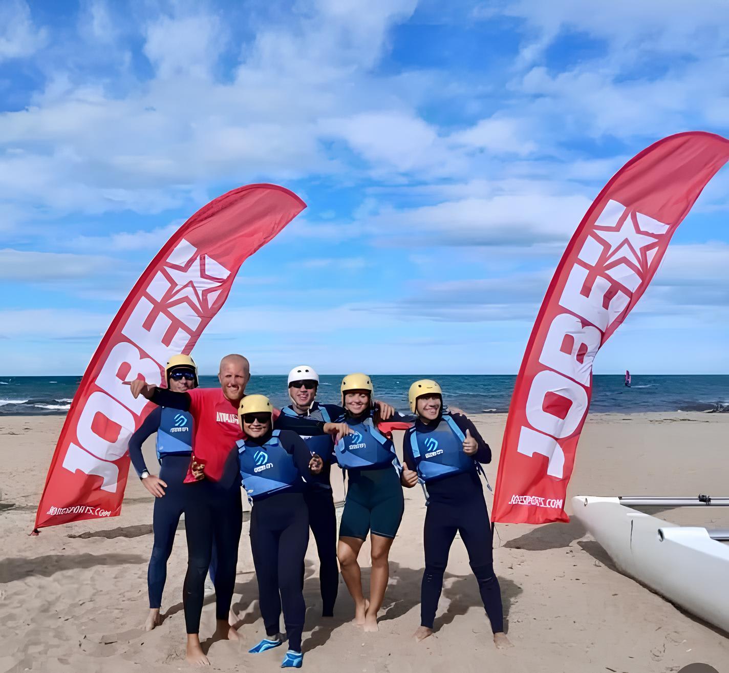 - Theoriesitzung an Land: Sicherheitsregeln, Erklärung der Ausrüstung und Verständnis der Windrichtung und des Windfensters.