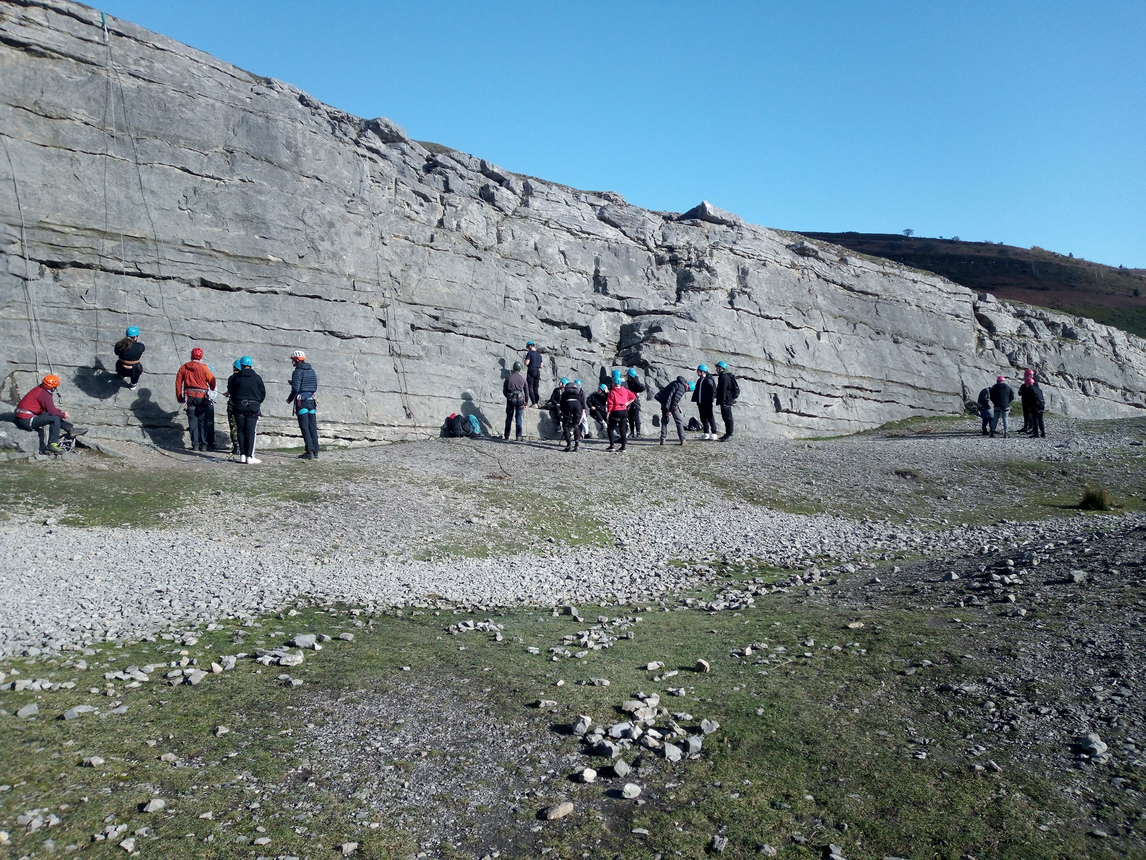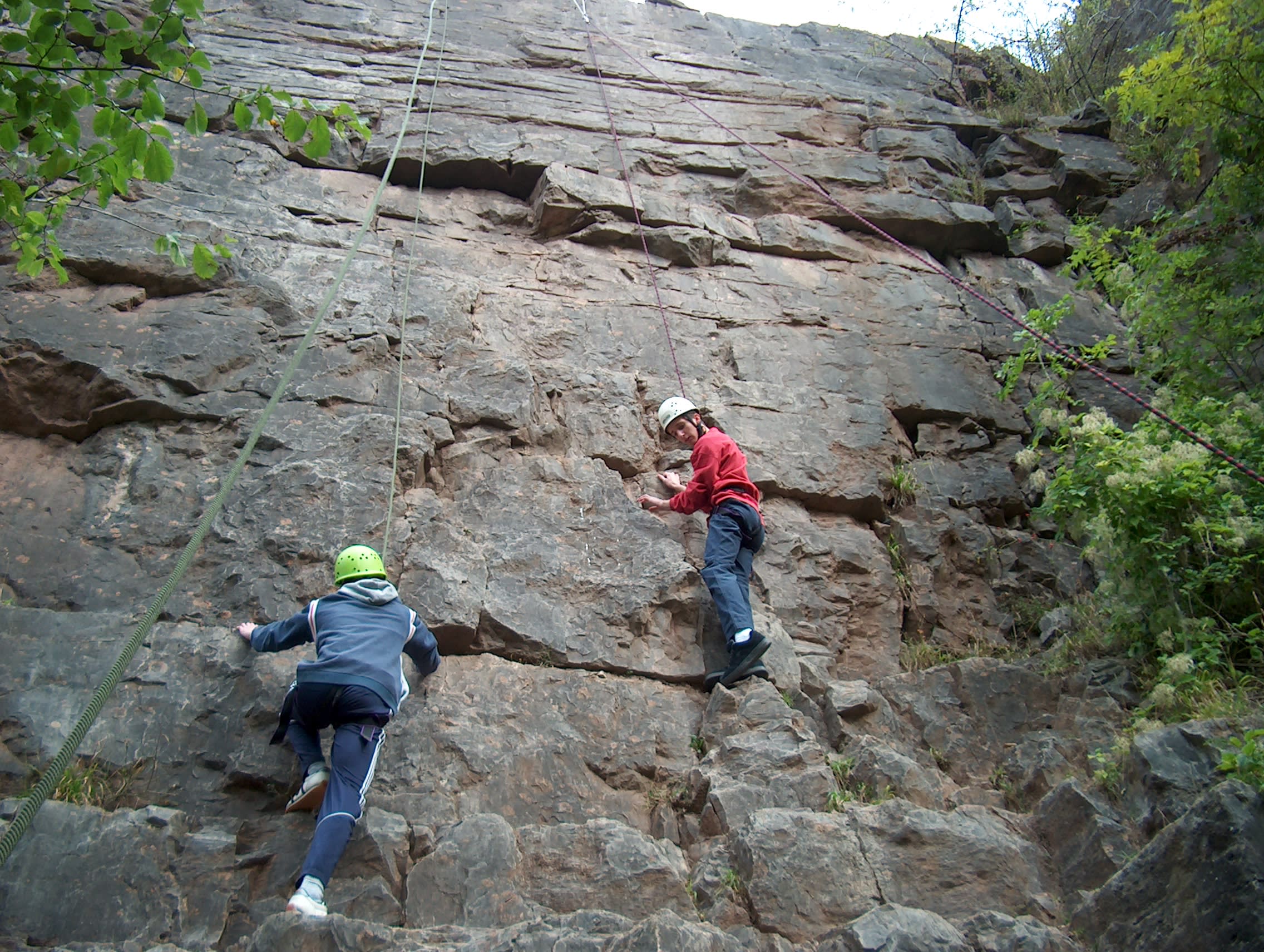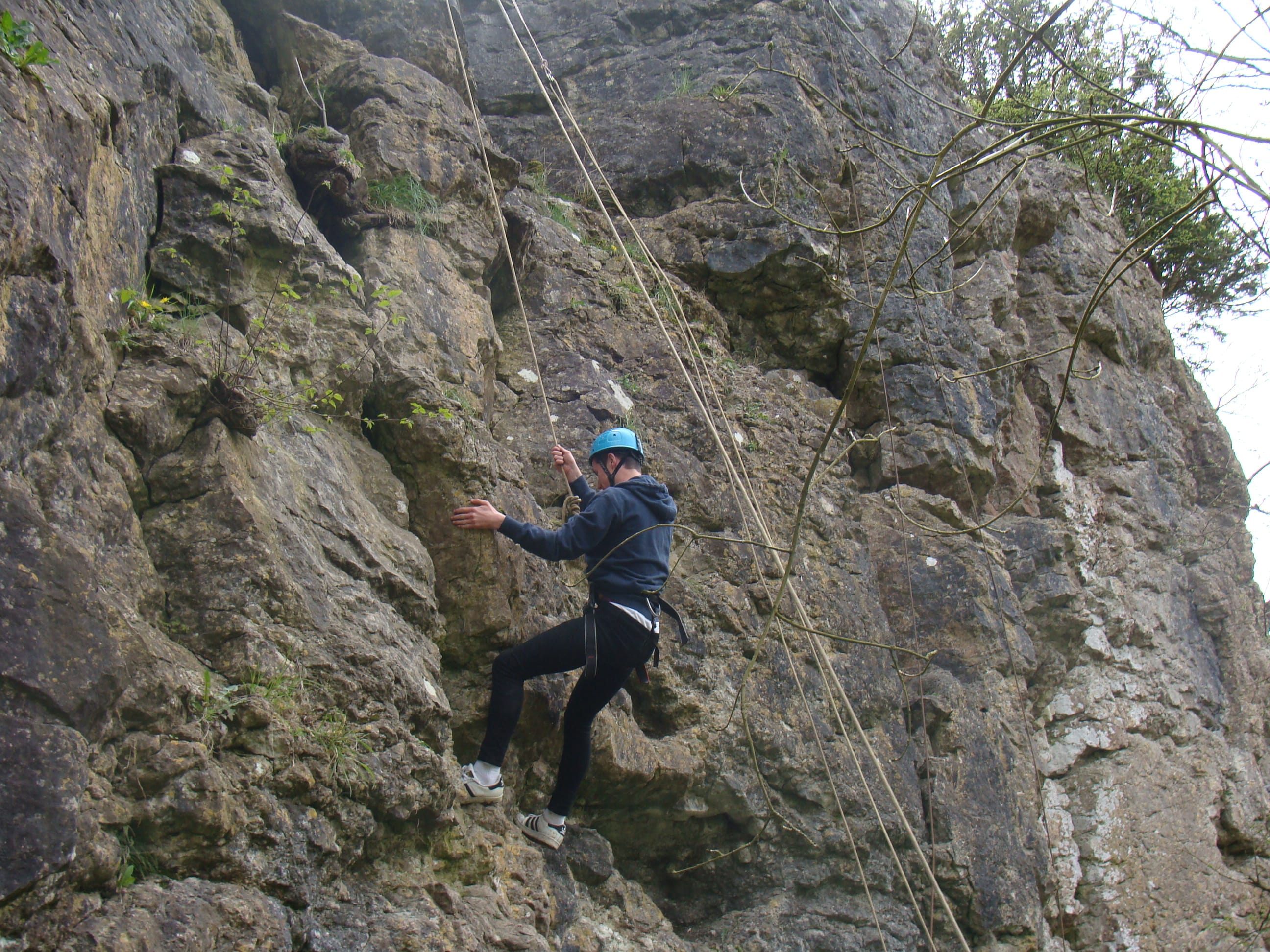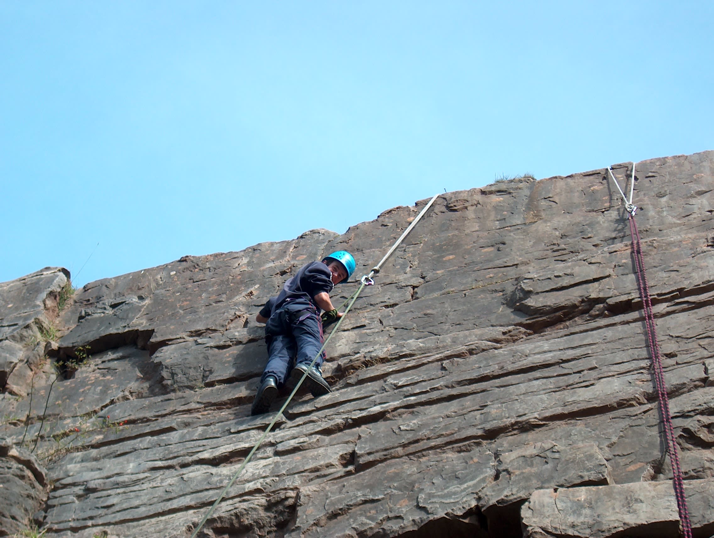 - Abseilübung, um zu lernen, wie man sich sicher von der Felswand abseilt.