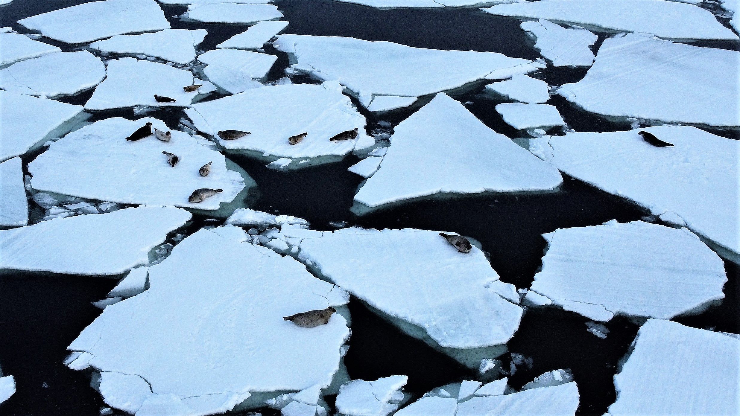 During your sea kayaking trip in Gaspé Bay, you will paddle among the ice floes in search of seals. The wild, unspoilt surroundings of this part of Québec offer a truly unique setting among drifting blocks of ice. With a bit of luck, you may spot seals resting nearby in this exceptional environment. Passing harp seals or hooded seals are also occasionally seen in the area.
