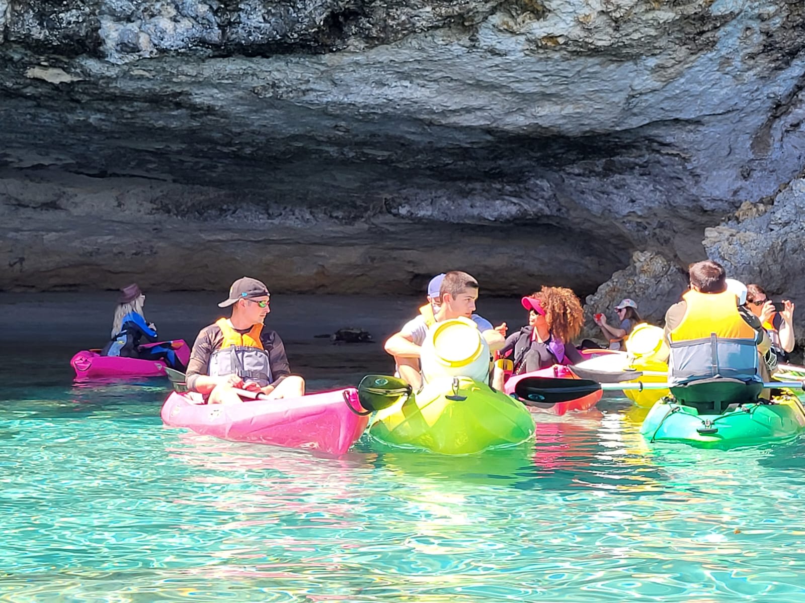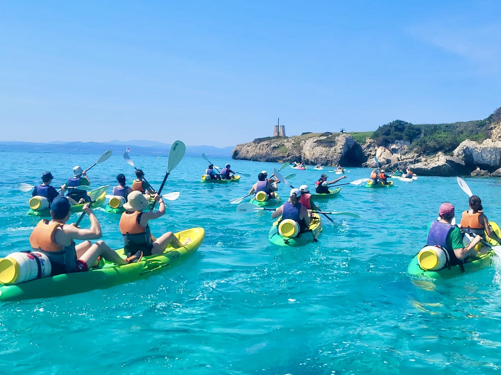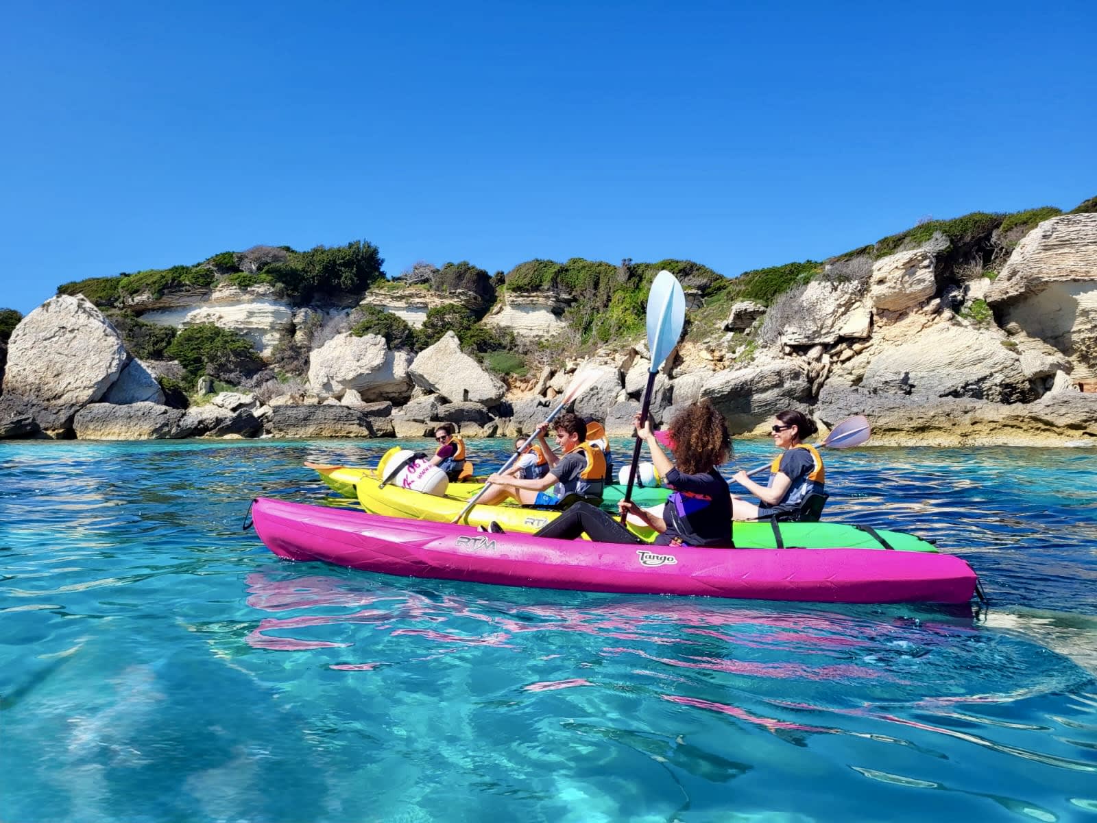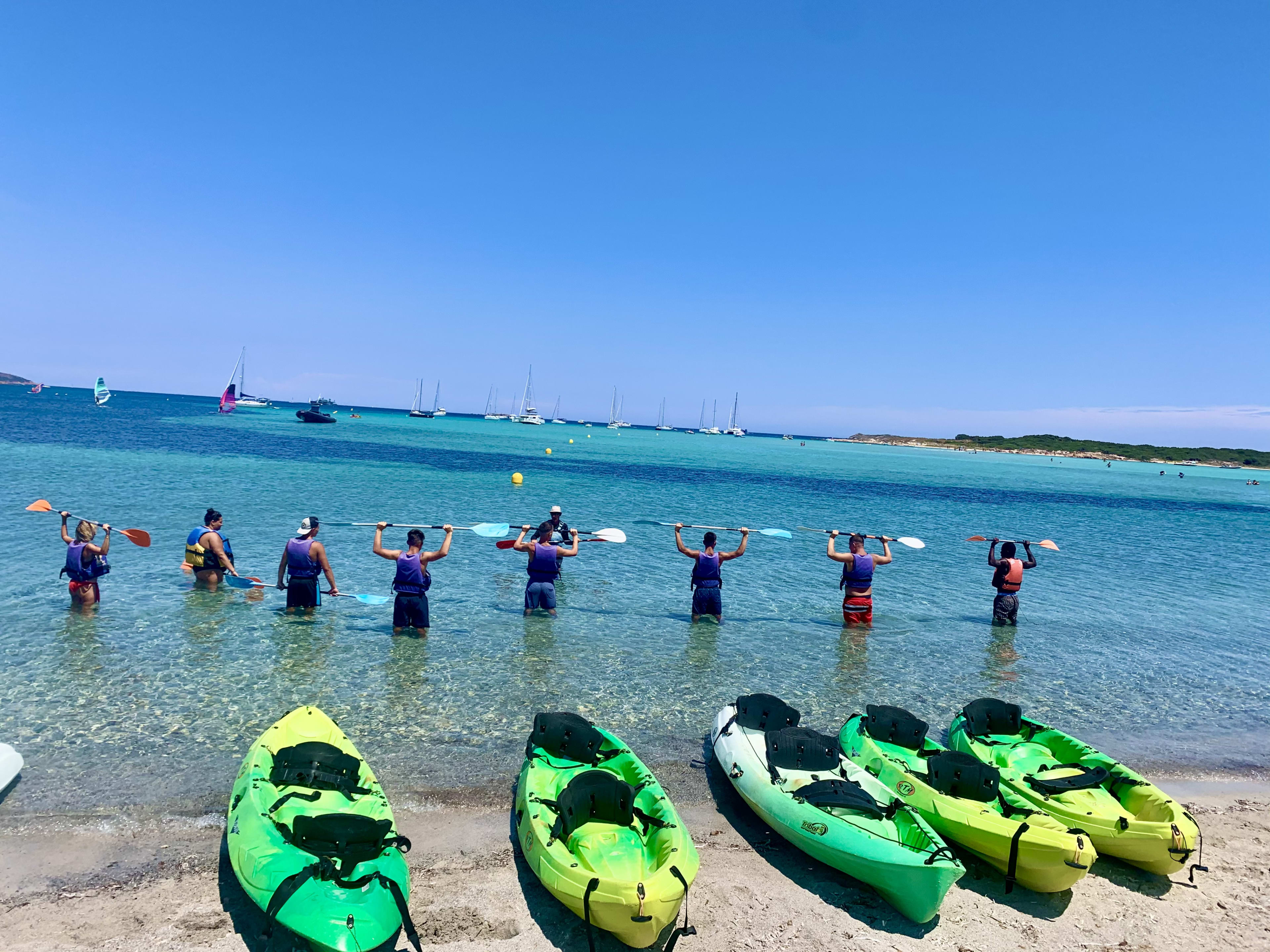 - Departure for a 2.5 hrs sea kayak trip to the cliffs of Bonifacio, including 1h15 of navigation and 1h of breaks in total (islets/beaches/caves/cliffs), including swimming stops to observe the seabed.