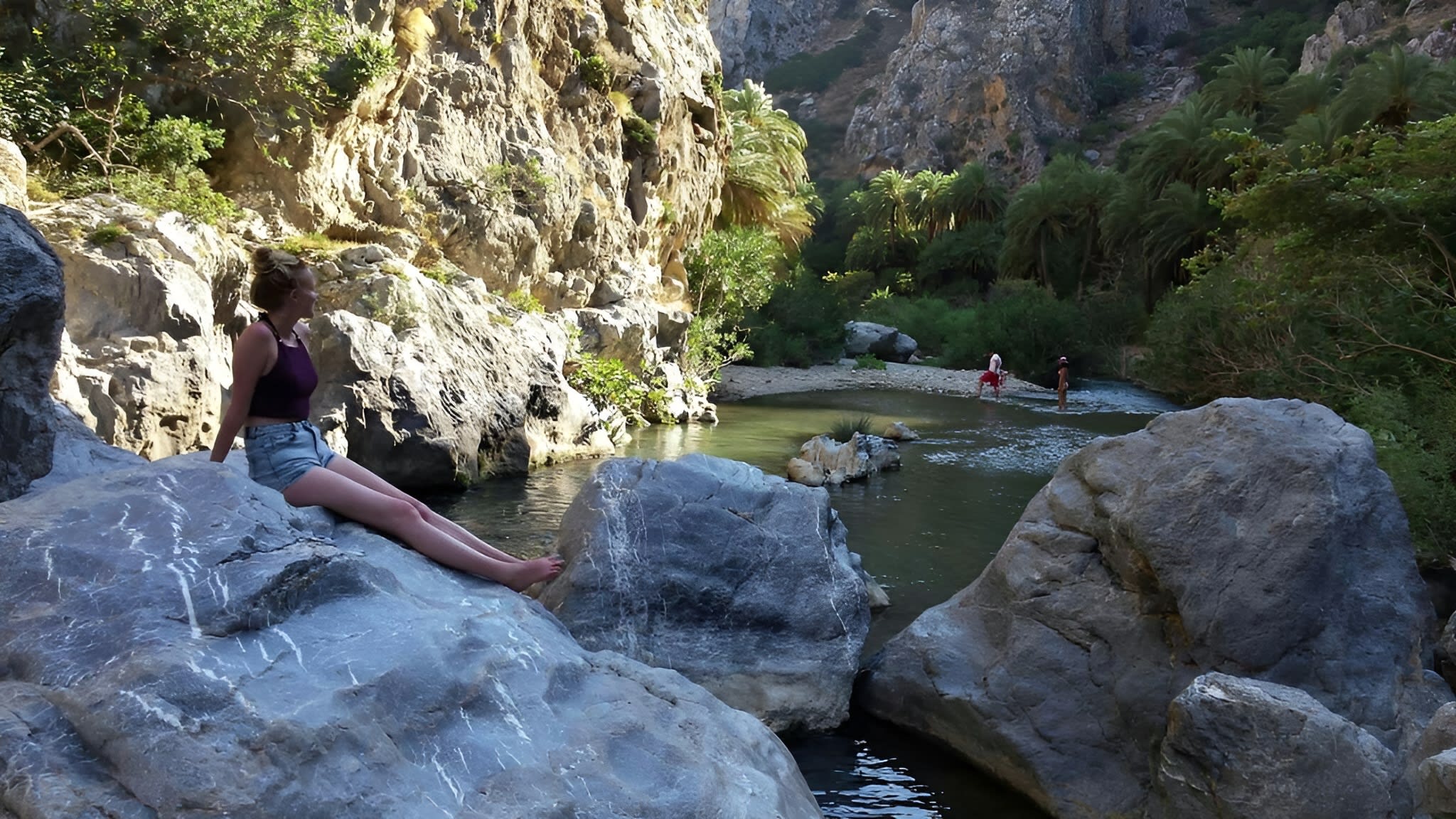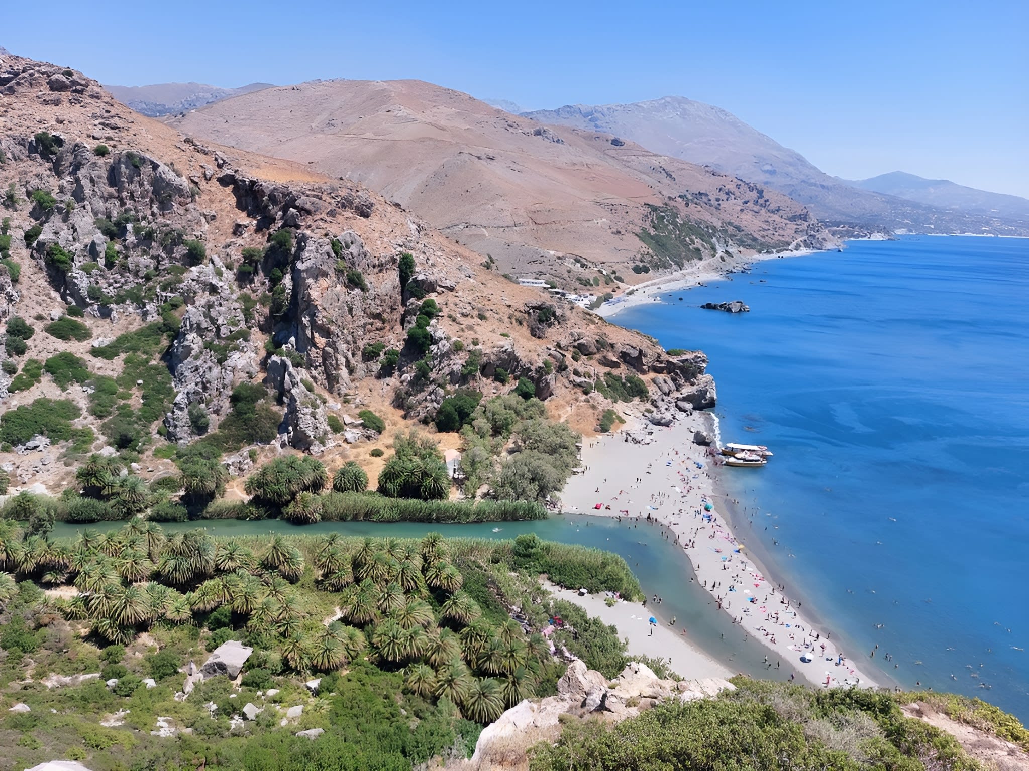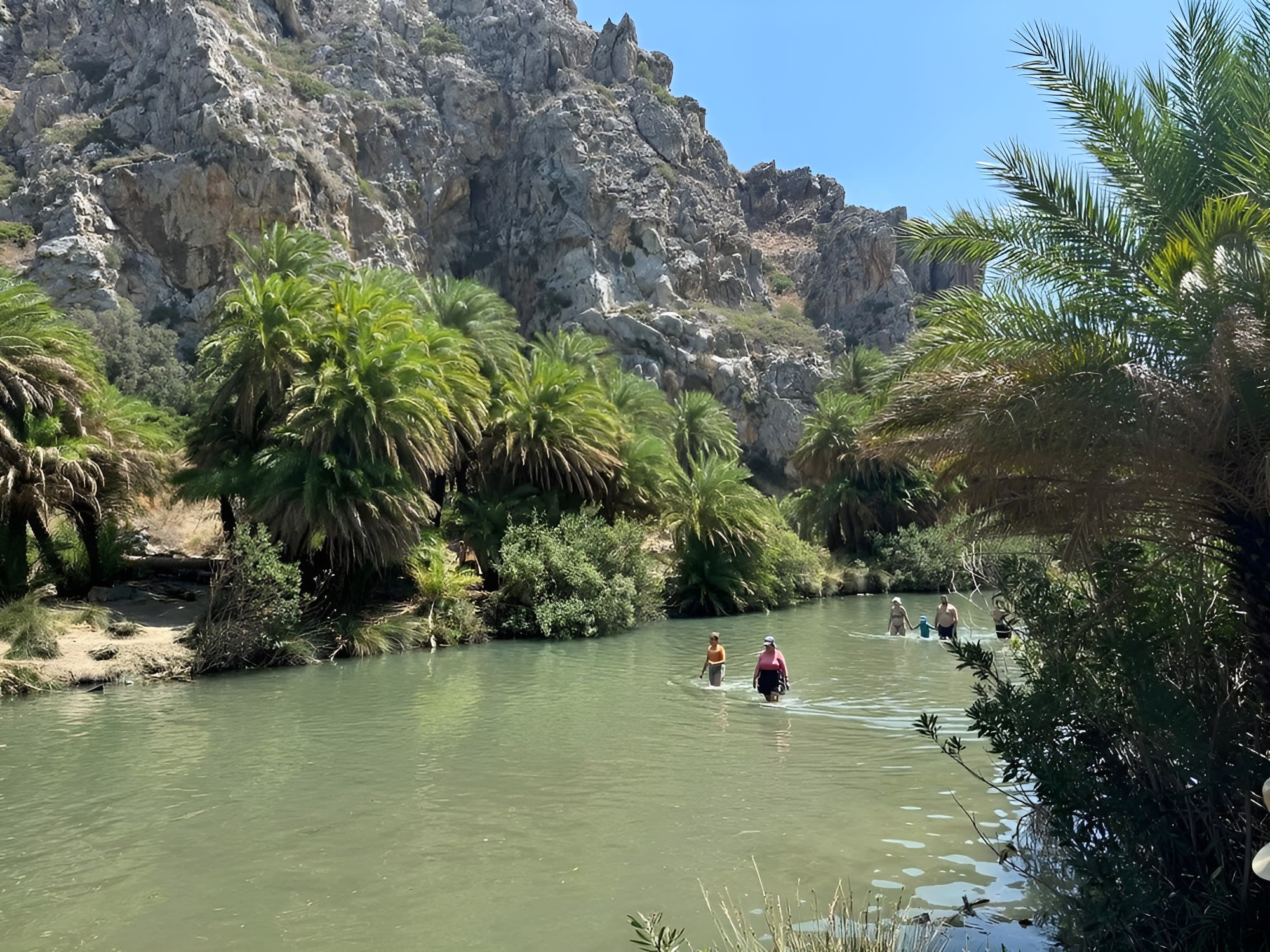 You'll start the day with a scenic drive to the Kourtaliotiko Gorge. Once you arrive, you will have to buy the 5 euro entrance ticket to the gorge, then take a short hike toward the waterfalls. Your instructor will give you time to enjoy the waters and take photos before returning to the car. The next stop is Preveli Palm Beach, a unique spot in Europe where you'll get to enjoy a beautiful palm forest, stunning, crystal-clear waters, and have time to relax. At midday, you'll enjoy a traditional Cretan lunch (which will include various local appetisers, as well as a pork, chicken, or vegetarian dish accompanied by wine and water.
