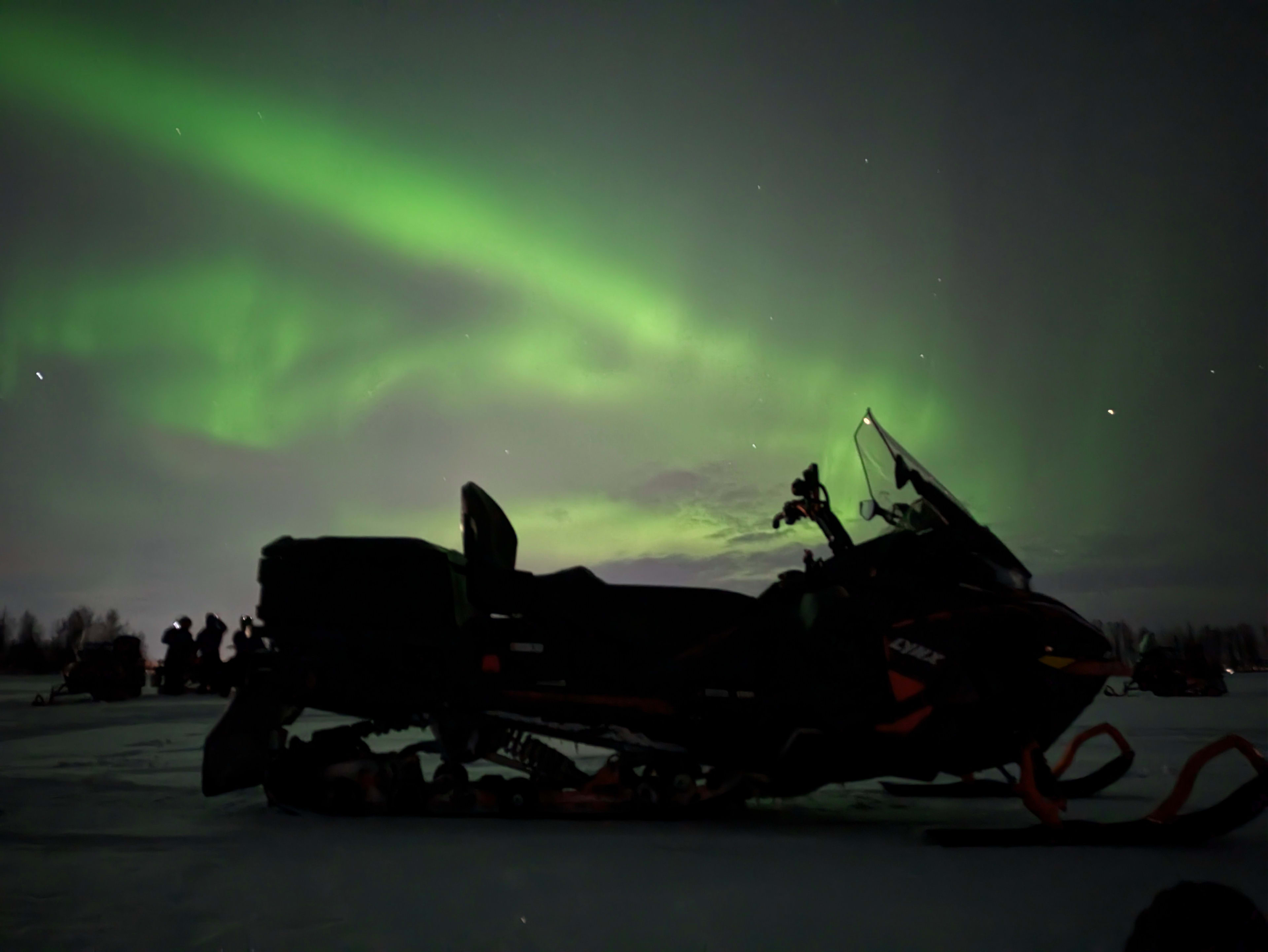 Next, you'll turn on your headlights and go! Following your expert instructor, you'll drive the snowmobile over the frozen waters of the Bothnian Bay, under the beautiful Arctic sky. Often, though it can't be guaranteed, you'll even ride under the Northern Lights. Midway through the experience, you'll make a stop to have a delicious hot drink to warm up, take a break, and enjoy the peaceful Arctic surroundings of the bay and the small islands to be found there. Finally, you'll hop back onto the snowmobile and head back to Kemi for the end of the experience.