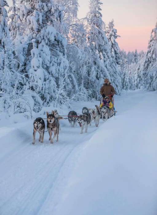 Live the ultimate Nordic wildlife day as you ride a minivan towards a husky and reindeer farms where you'll experience sleigh rides with both from Levi!