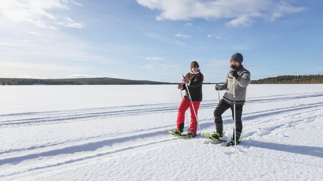 Discover the incredible snowy landscapes of Finnish Lapland with a fun and energetic Arctic tradition on this 4-hour snowshoeing excursion from Rovaniemi! Enjoy:
