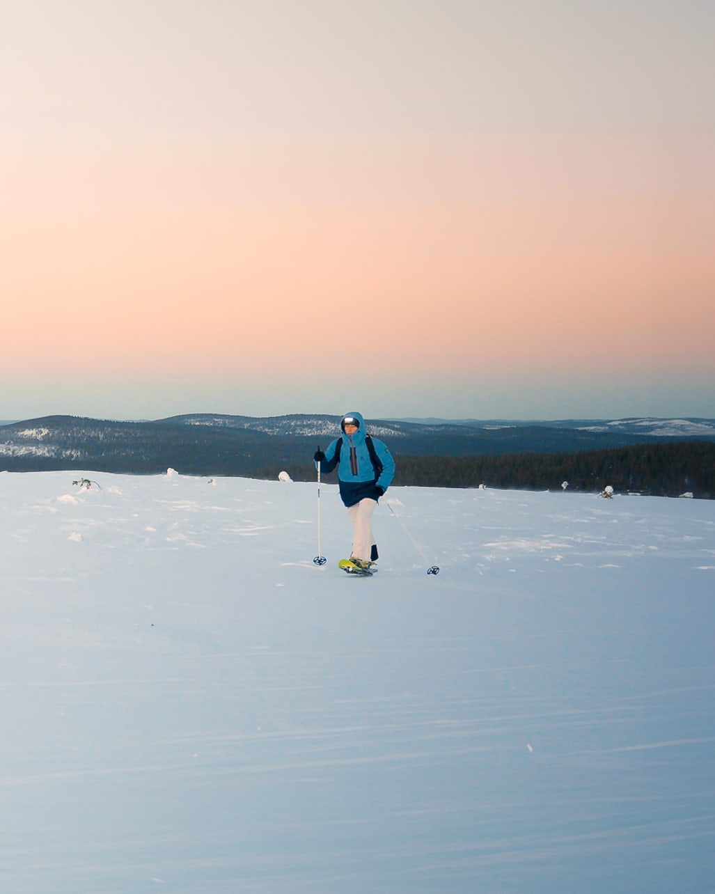 Once you're ready, it's time to start! You'll set off on this adventure with your instructor at the head of the group, taking you through a beautiful Arctic forest, deep into the Lappish wilderness. You'll take breaks when needed, and your instructor will manage the pace of the excursion to accommodate your group's physical level. When you get back to the starting point of the experience, you'll get to warm up with a delicious light barbecue and hot drinks over a campfire.