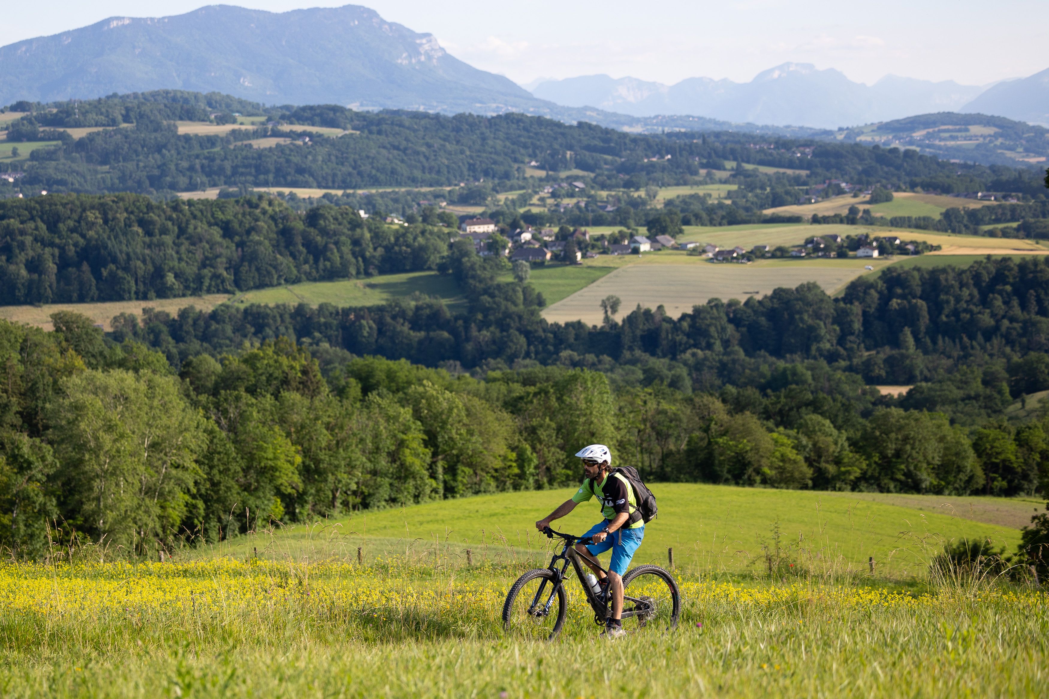 A hilly region straddling Haute-Savoie and Savoie, between Lake Annecy and Lake Bourget, the Albanais region offers superb countryside and mountain scenery. It is the perfect place to set off on a mountain bike tour from Rumilly, the main town in this area of some 350km². And to make the most of such an escapade, nothing beats the company of a local guide who can tell you all about the region's history, flora and fauna! That is why the Maison du Vélo de Rumilly is offering you this guided electric mountain bike tour of the Albanais region, an experience that will take you on a 2.5-hour ride along its off-road trails.