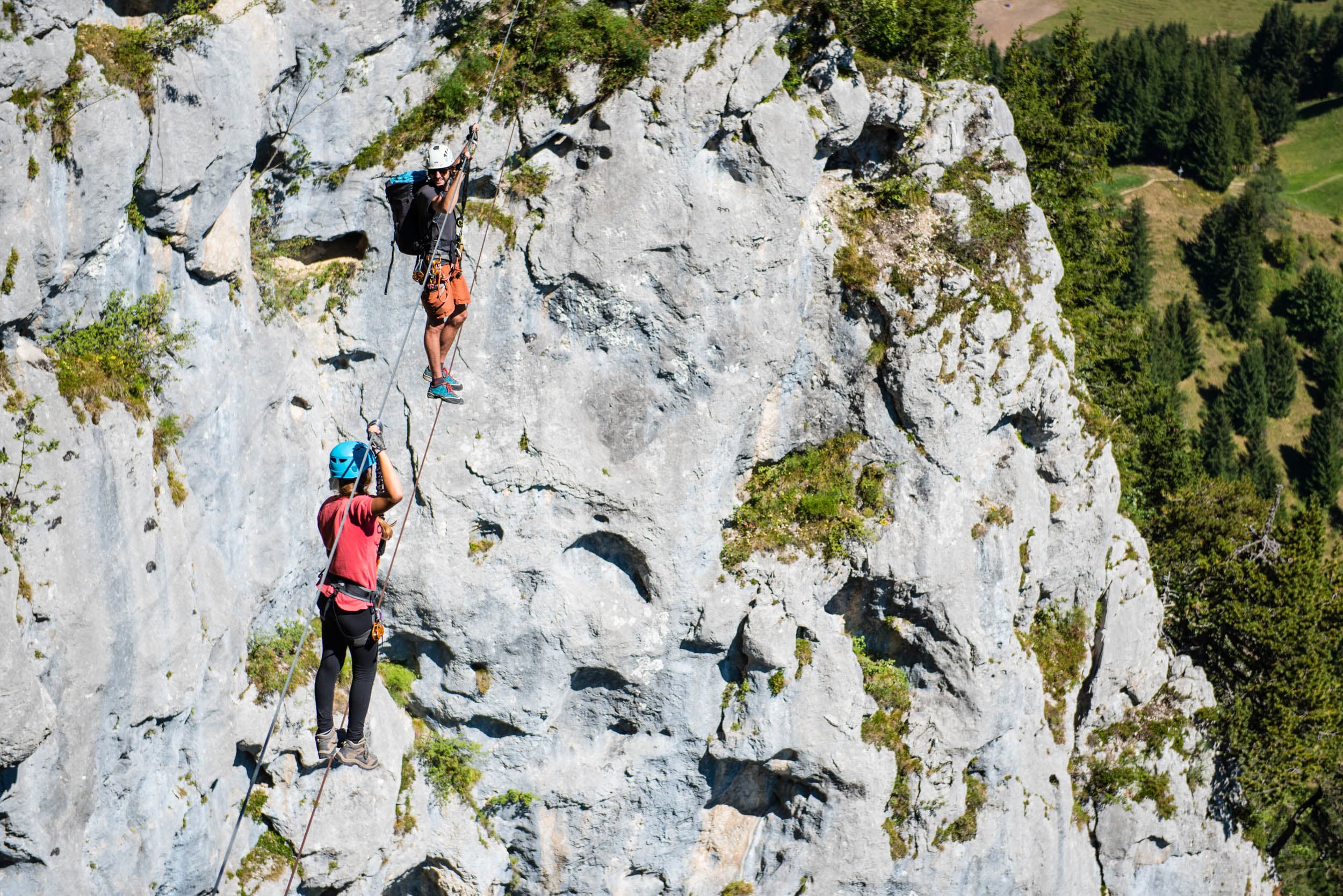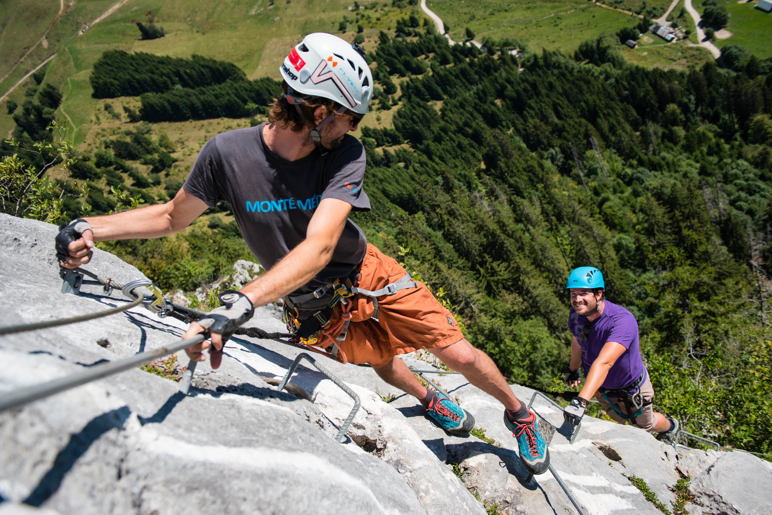 Discover a 3.5 hour course alternating hiking, via ferrata, monkey bridge and zip lines on the Montmin via ferrata with an experienced guide!