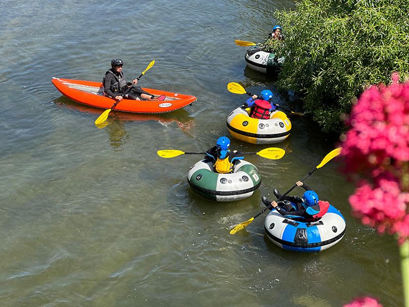 - Course of the tubing activity (≈1h15min): descent of rapids, slide down the toboggans with the possibility of repeating these fun passages, swimming and slides with lessons on white water, 4km descent through the town of Quillan.