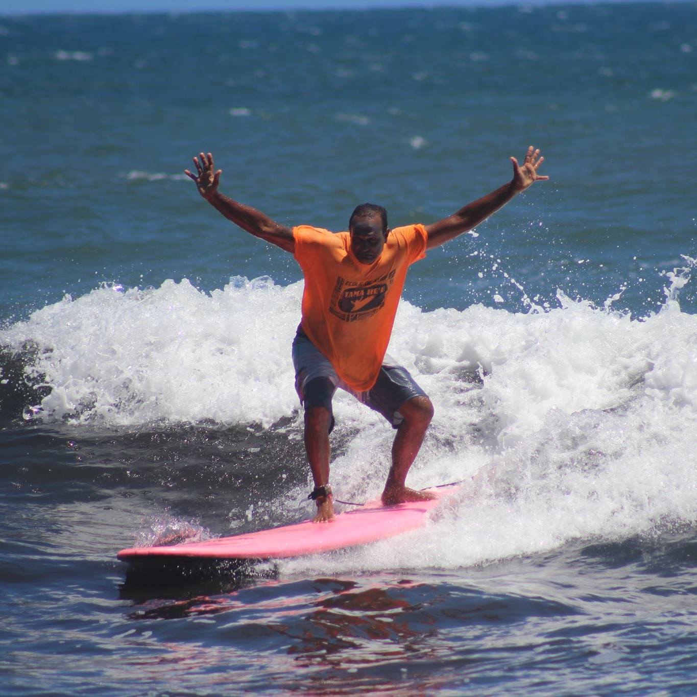 Olivier Napas is in charge of the advanced courses. He's a real expert, and the only instructor to hold the BEES 2nd degree on the island of Tahiti. He'll take you out by boat to surf his favourite spots all over the island, particularly around the reefs on the west coast. The spot may vary according to weather conditions or the level / average age of the group.