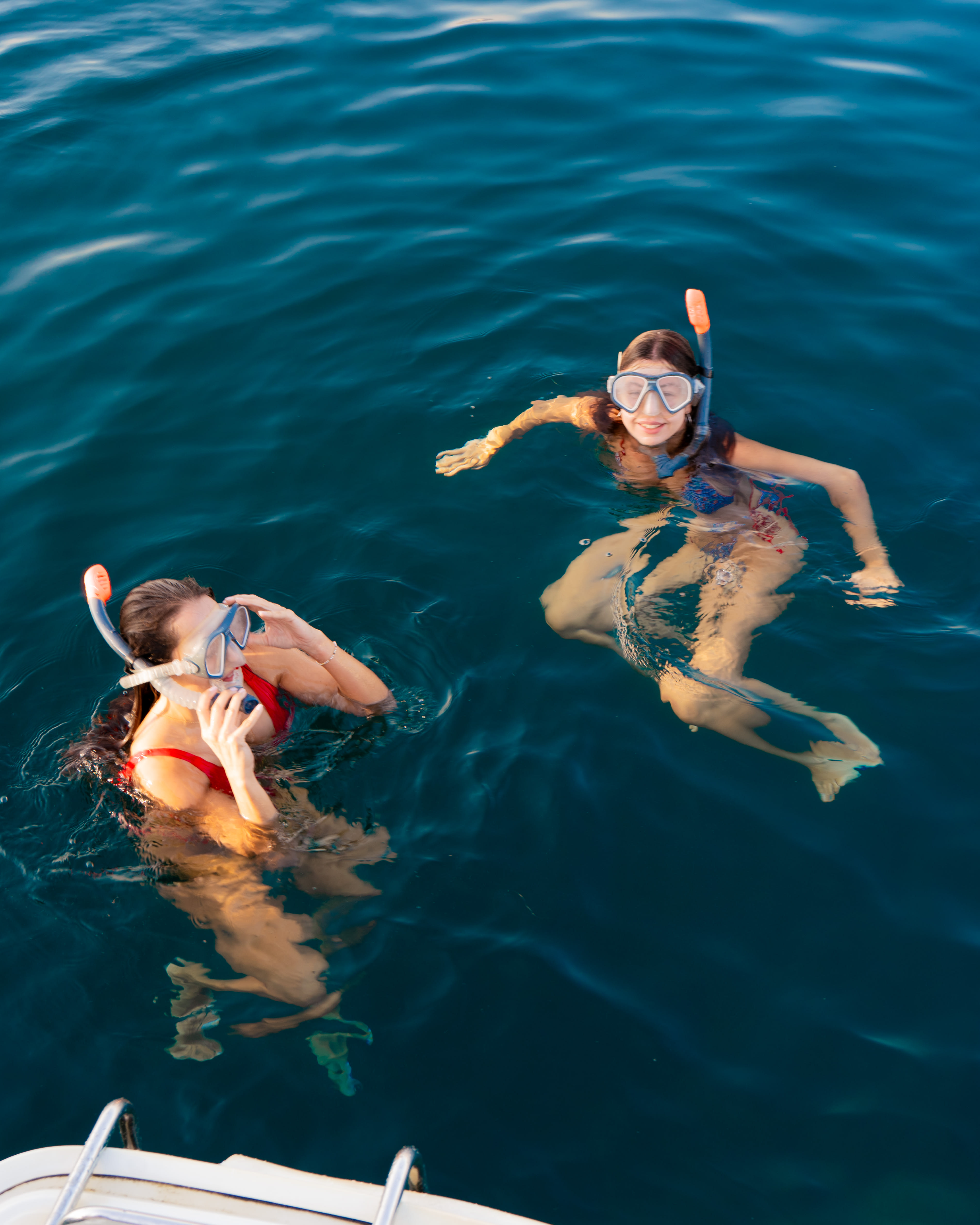 Relax on the deck and feel the warmth of the Mediterranean sun as you sail along the beautiful Athenian coastline. You’ll have a magnificent view from the Athens Riviera as you enjoy a cold refreshment, beer or Greek wine from the bar. The boat will sail past the stunning areas of Glyfada, Voula, Kavouri and Vouliagmeni, passing picturesque coastal towns, sandy beaches, waterfront cafes, and luxury hotels. Soon you’ll arrive at a secluded bay, where you can enjoy a relaxing dip in the crystal clear waters. Fresh towels and goggles will be provided for your comfort. You’ll then continue sailing to another private spot, where you’ll have a second swimming stop.