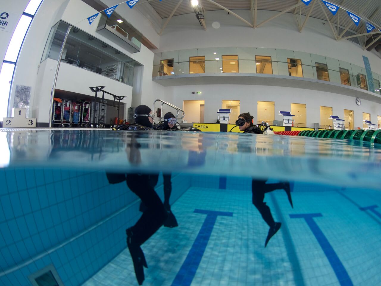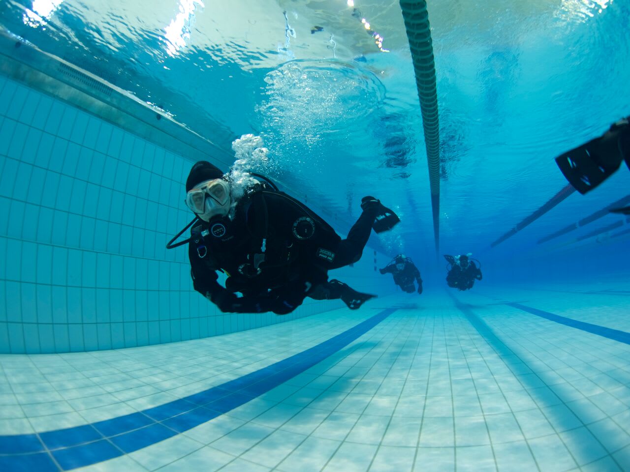 - Confined water session at a local pool with introduction to diving in a dry suit