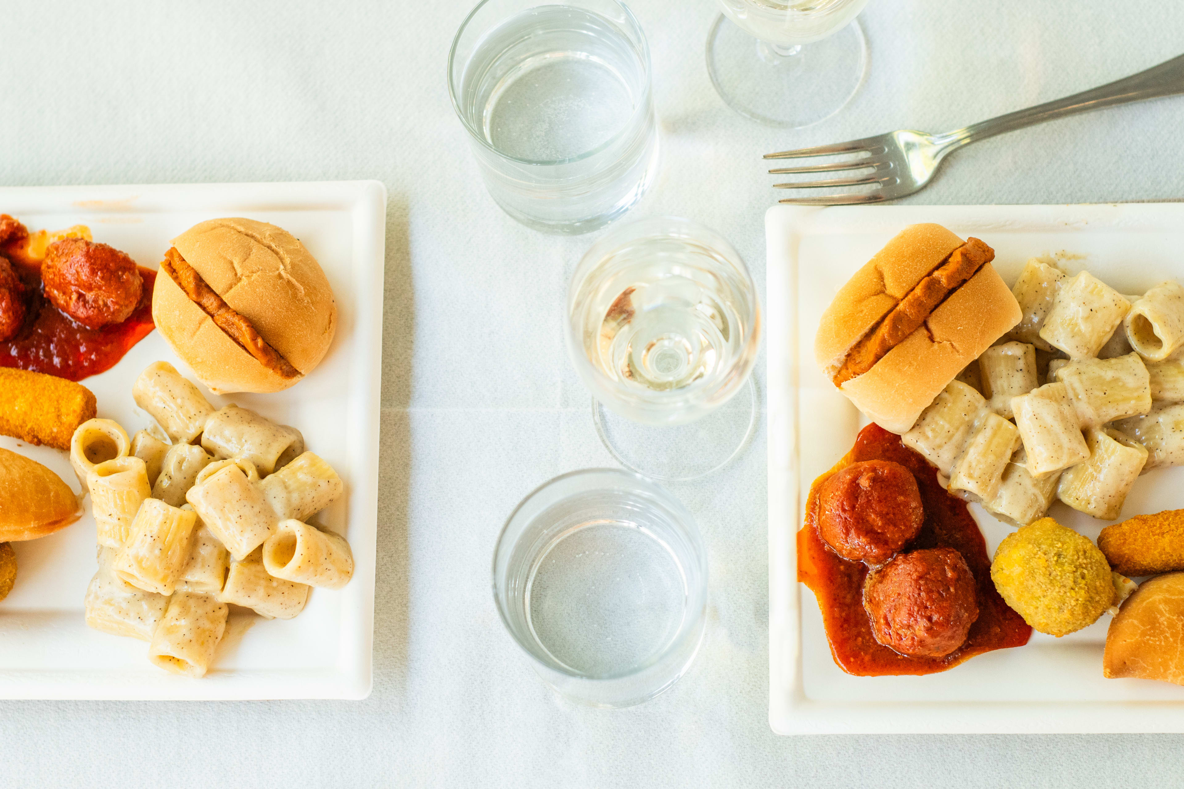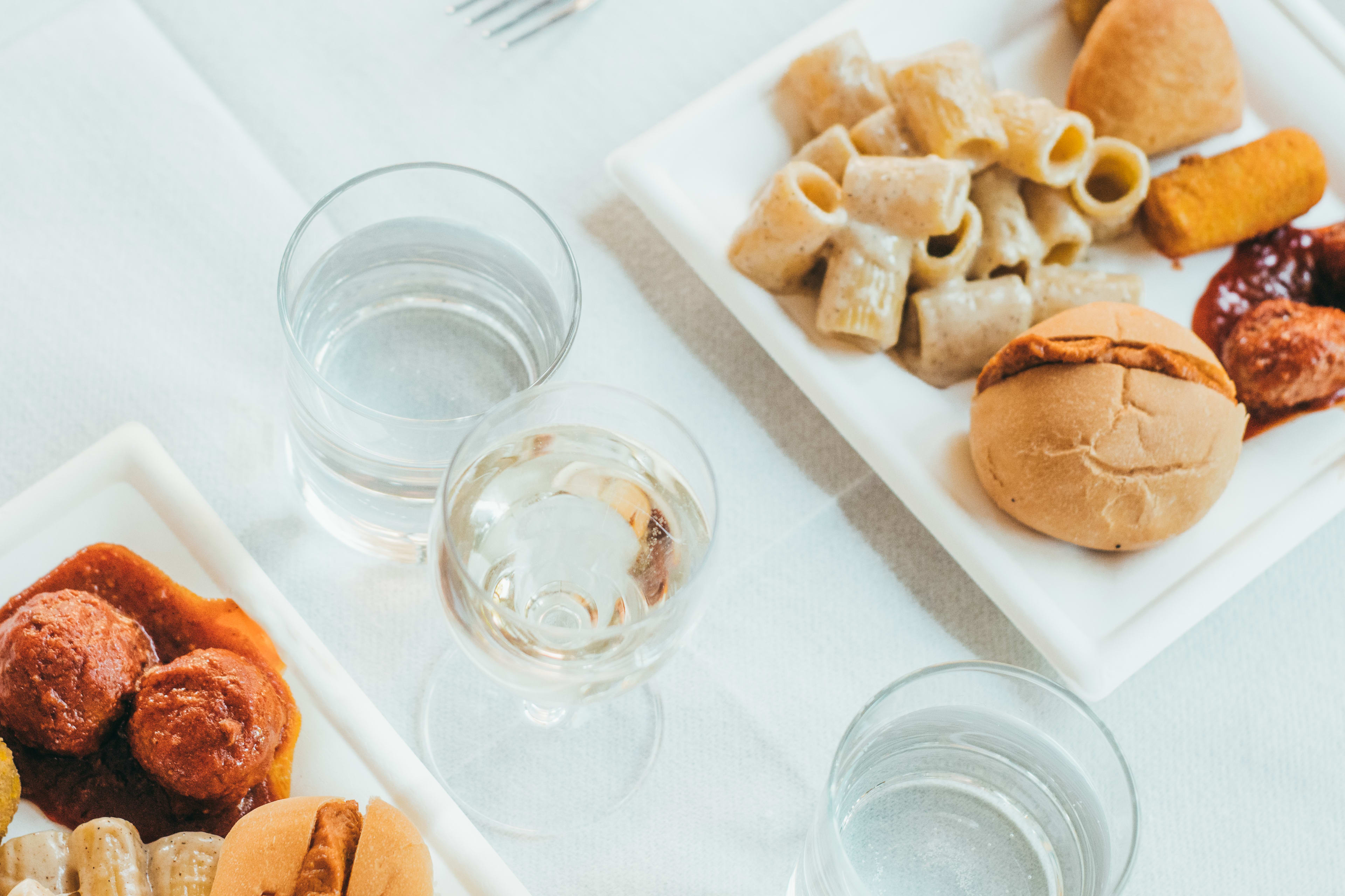 - Navigation with aperitif service: Fresh handmade pasta Cacio e Pepe tasting, Potato Flan with Eggplant Parmigiana, Trio of fried specialties, Meatballs with Tomato Sauce, Glass of prosecco or red/white wine (non-alcoholic drink for minors)