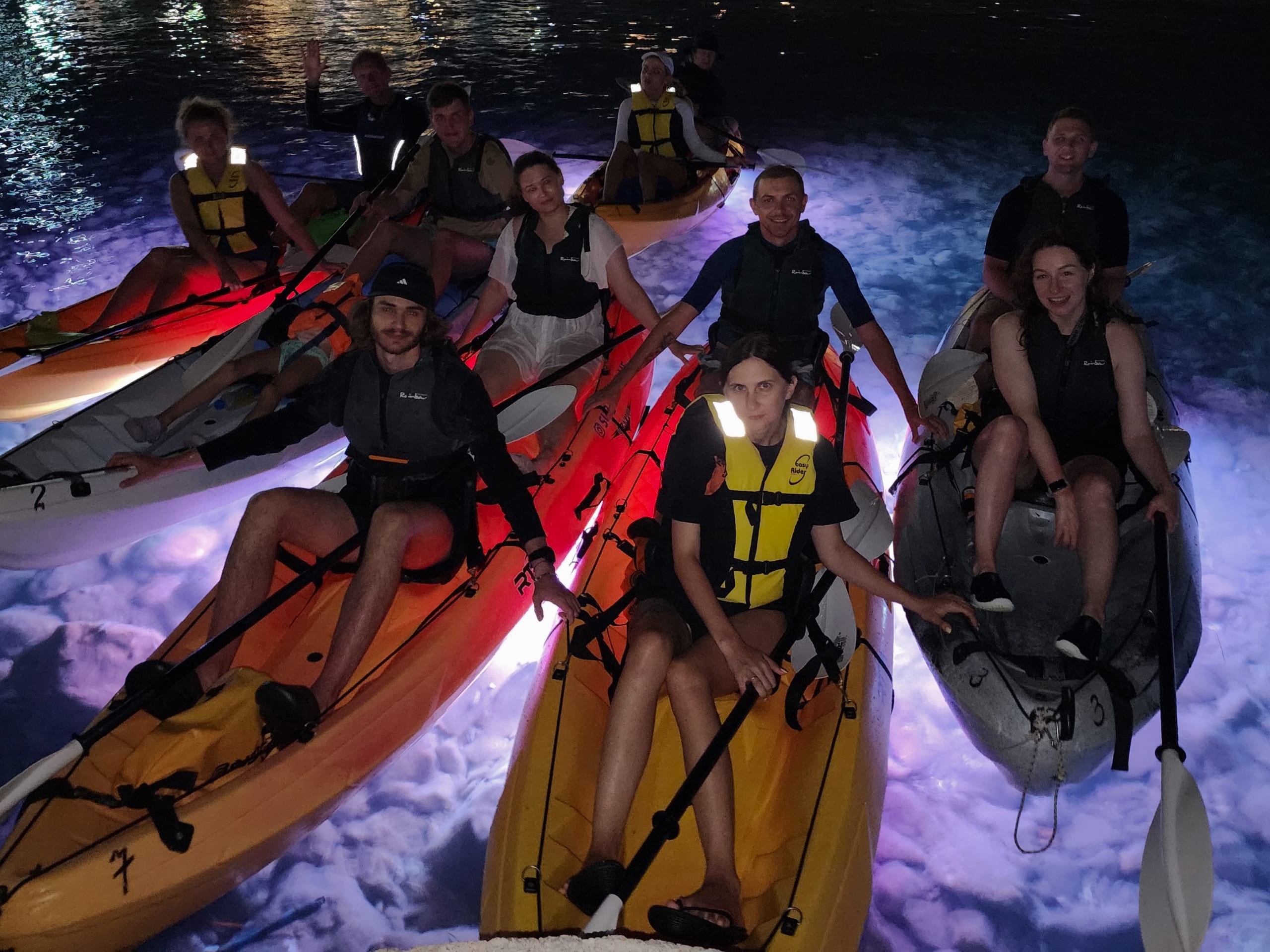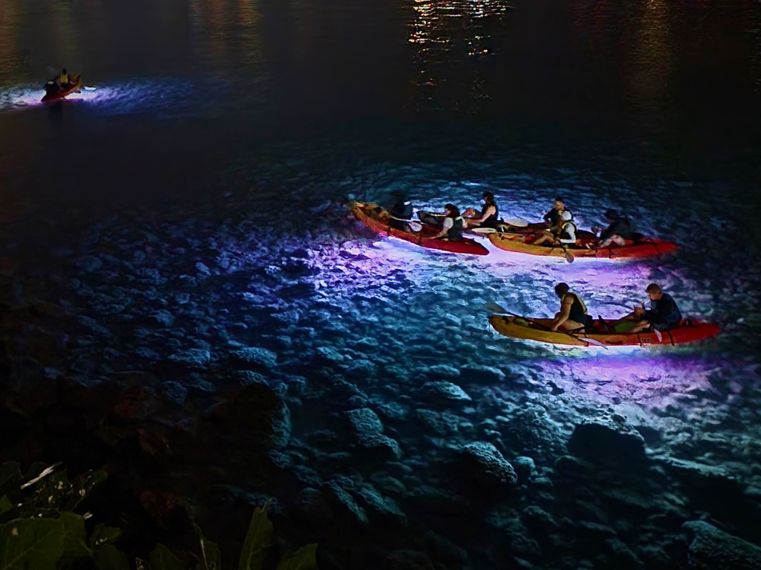 - Board your LED-lit kayak and place your essentials in a dry bag (or leave them with the staff for safekeeping).