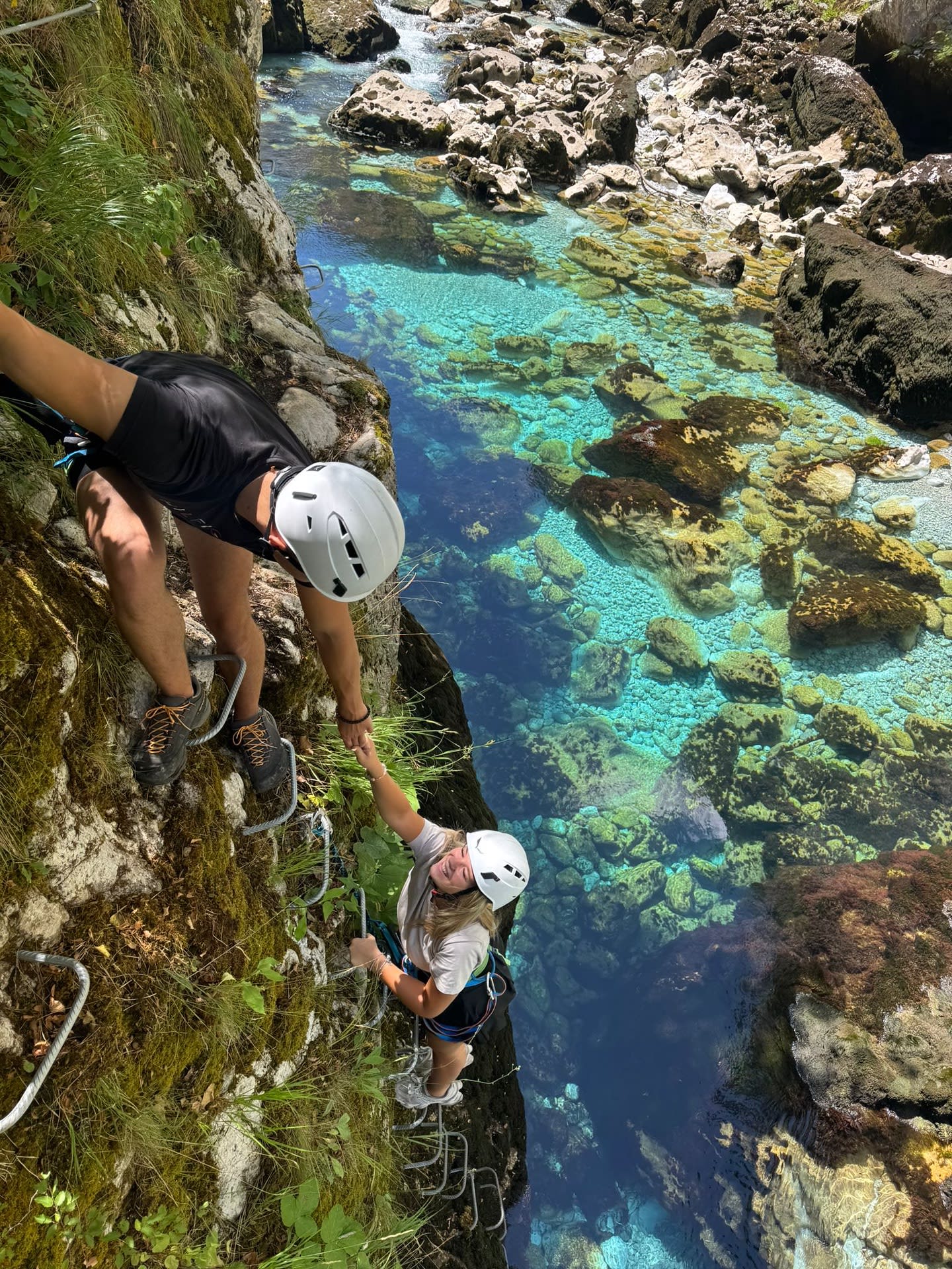 A thrilling blend of hiking and climbing, via ferrata follows a protected route fitted with fixed cables and features such as steps and steel rungs. No previous experience is required: a professional guide with expert knowledge of the Piva Canyon will accompany you throughout, adjusting the pace to ensure a rewarding and unforgettable experience. With groups limited to just 10 participants per guide, you’ll receive personalised advice and support to help you progress with confidence.