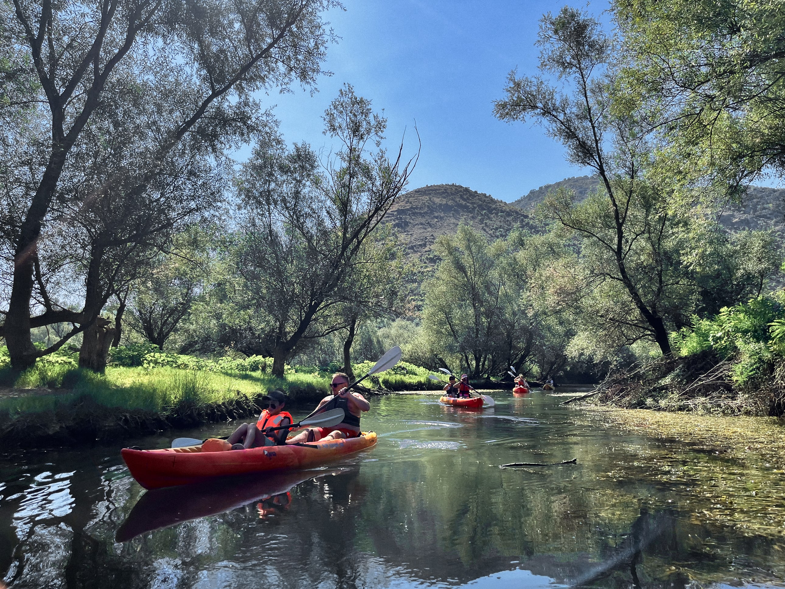 - Receive your gear and attend a safety briefing, including the basics of river kayaking.