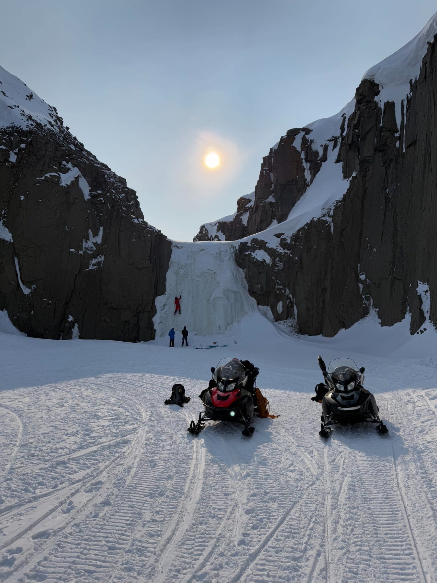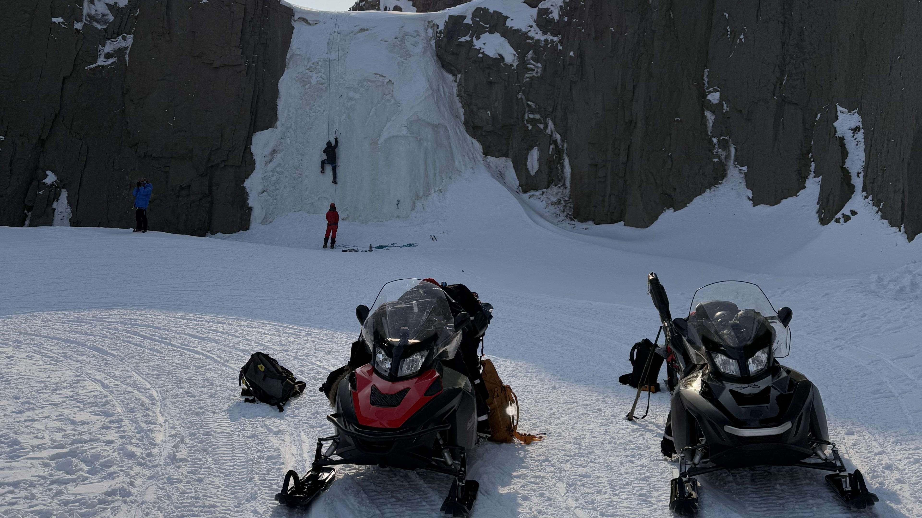 - Ride the snowmobile to the climbing location, passing through untouched snowy landscapes