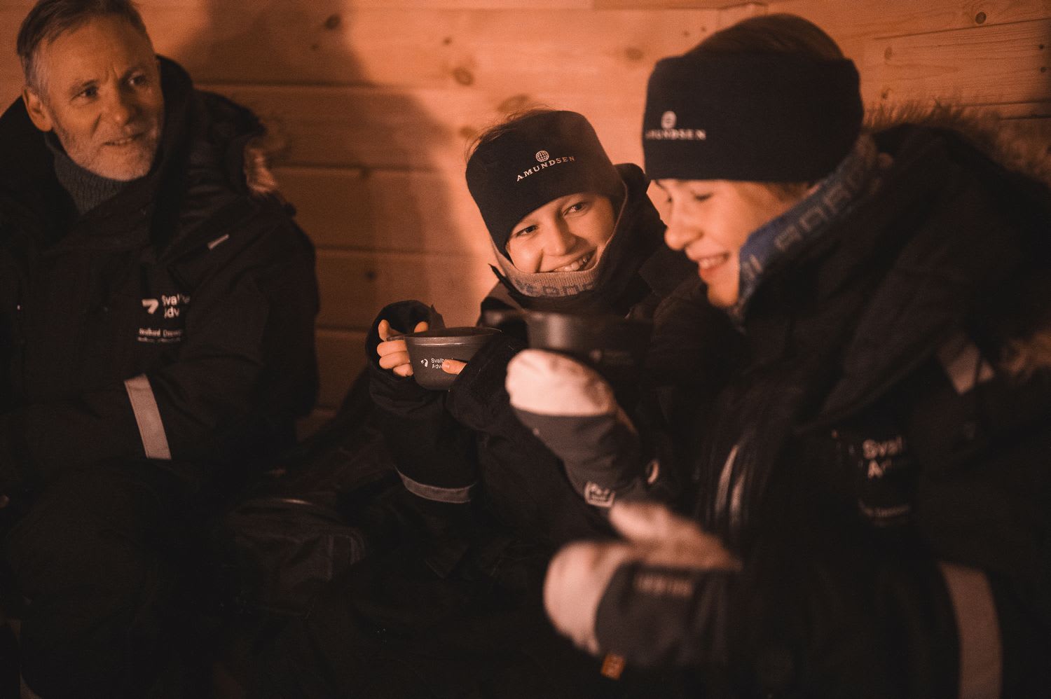 - Snack and hot drink break in a warm cabin