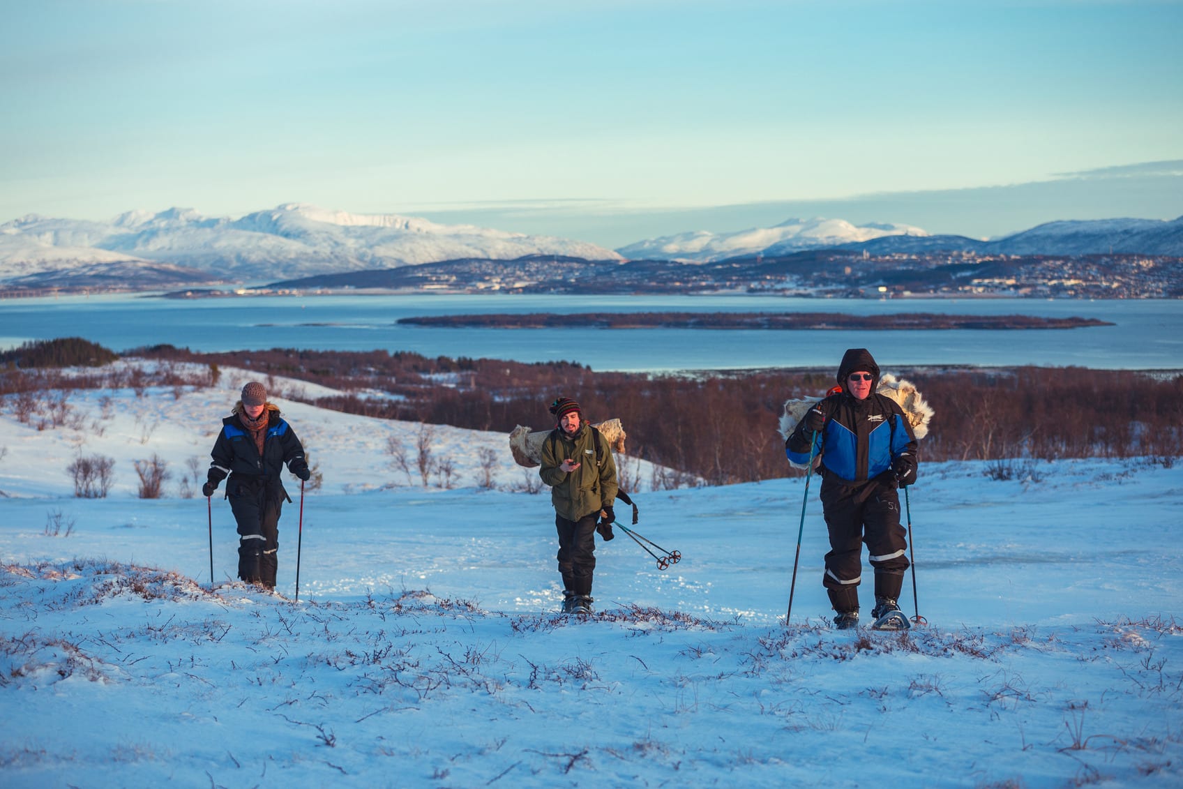 Your snowshoe activity from Tromsø begins in the city, where you'll meet your experienced guide and set off on a 25-minute drive to Kvaløya Island. There, you'll tour the kennel and meet the dogs before receiving your winter clothing and snowshoeing equipment (thermal overalls, boots, snowshoes, and poles). After some time cuddling and playing with the affectionate Alaskan Husky dogs and puppies, you'll prepare for the hike!
