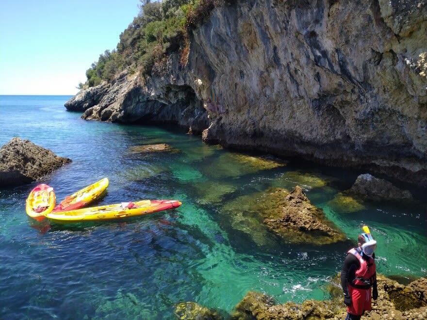 - At the beach, kayak along the Arrabida coast to discover 3 unique sea caverns snorkel in Anicha island.