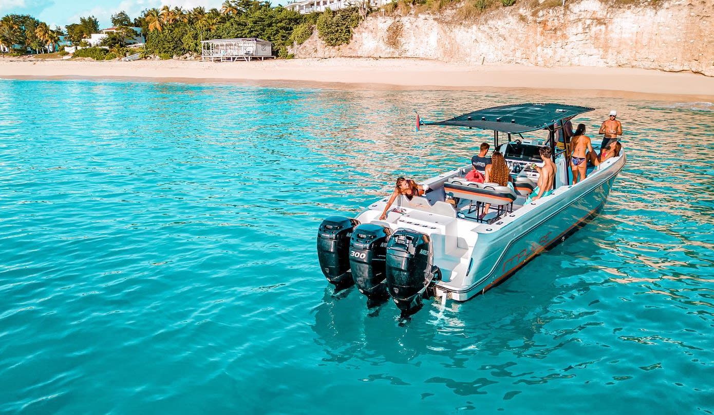 With its white sandy beaches, crystal-clear lagoon, oversized yachts and luxury seaside villas, the Terres Basses is a dream setting for a 2-hour boat trip in Saint-Martin starting from Simpson Bay. Aboard the Donzi Zf, a luxury motorboat suitable for up to 12 passengers, you will sail along the south coast of Sint Maarten from Simpson Bay to Terres Basses to discover not only its superb scenery, but also an incredible swimming and snorkelling area.